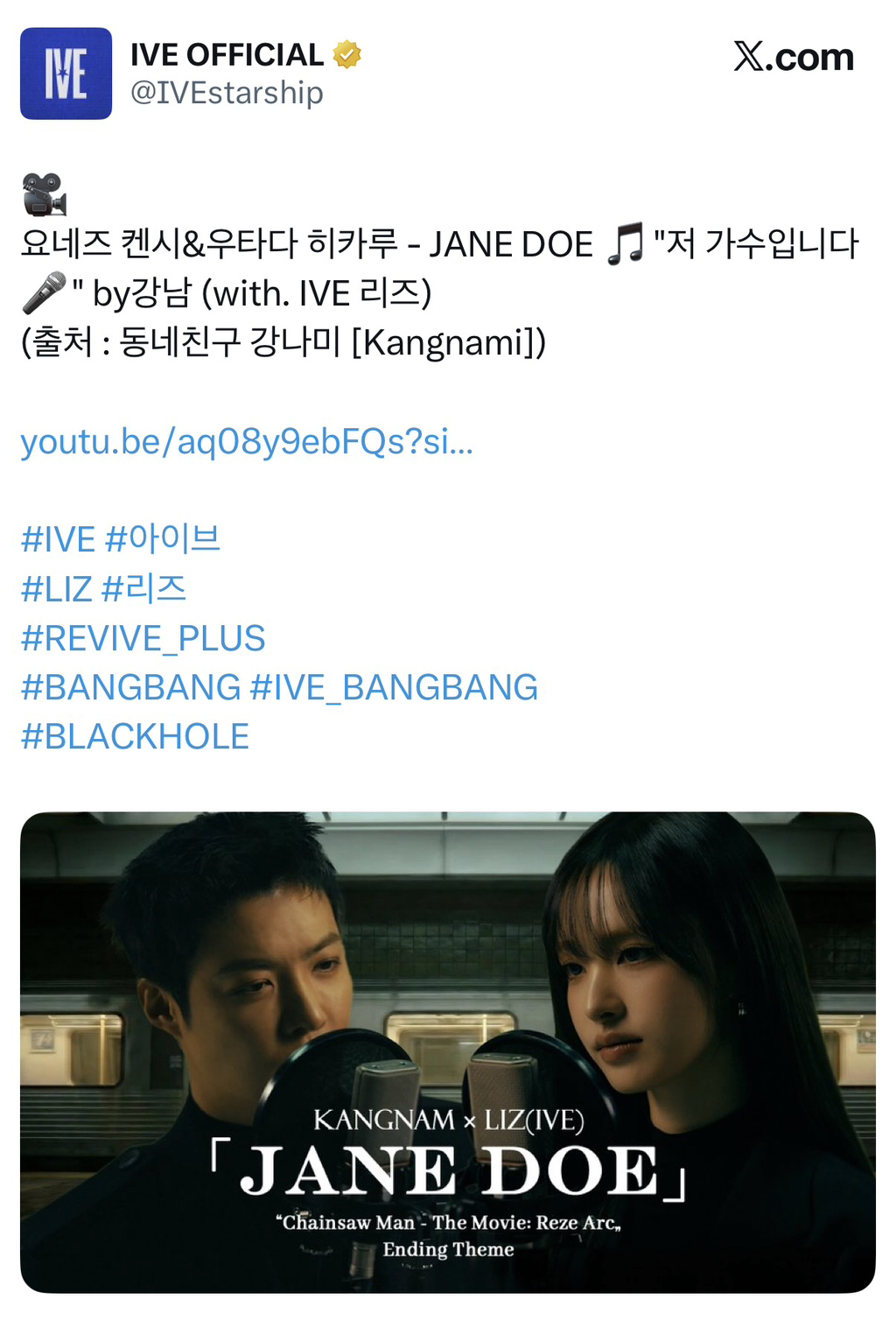 제인도가 체인소 맨 이번 극장판 엔딩곡이기도 한데 이거 커버한 한국 아이돌 중에서는 거의 처음이라고 함