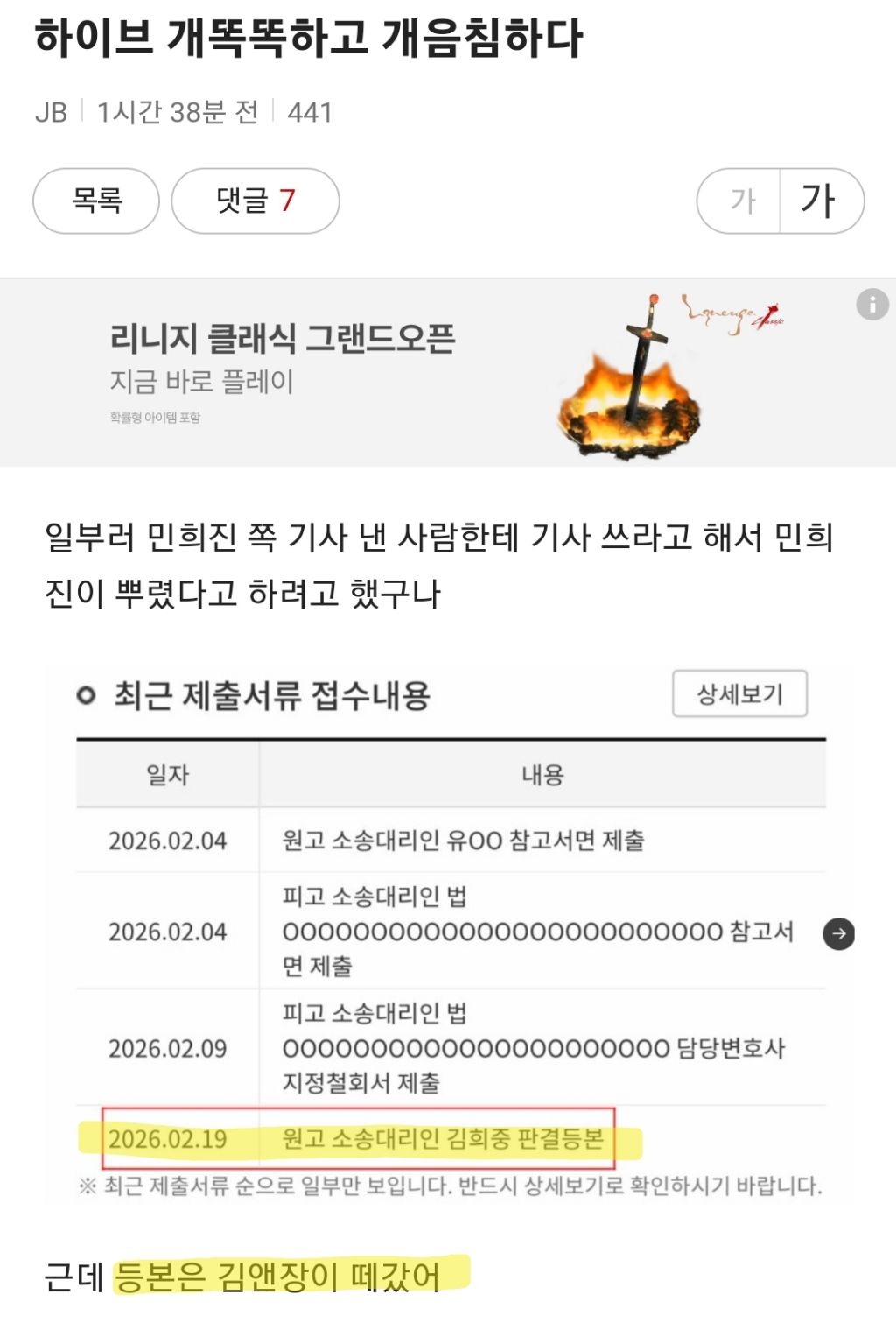 [스크랩] [흥미돋]하이브가 민희진 뷔 카톡 깠나본데 작성자구름위를뚱뚱|작성시간26.02.20|조회수55,486 목록 댓글 49 글자크기 작게가 글자크기 크게가 ㄷㄷ 다음검색 스크랩 원문 : *여성시대* 차분한 20대들의 알흠다운 공간 현재 게시글 추가 기능 열기 북마크 공유하기 신고 센터로 신고 댓글 댓글 49 댓글쓰기 답글쓰기 댓글 리스트 작성자보기만하는 토끼 | 작성시간 26.02.21 난 민이 까서 욕먹는줄 알았는데 알고보니 결국 얘네가 깐거란건가? 가지가지하는구먼 작성자룰라1 | 작성시간 26.02.22 음침하다증말 작성자이지금이야수 | 작성시간 26.02.23 짜치고 음침하고하는 짓이 쪽국같네? 작성자힘내부아앙 | 작성시간 26.02.23 음침 작성자에어맥스34 | 작성시간 26.02.23 진짜ㅋㅋㅋㅋㅋㅋ 갑자기 버즈량 존나 뛰는거 ㅎㅇㅂ가 불씨던진거 개티남 댓글 전체보기