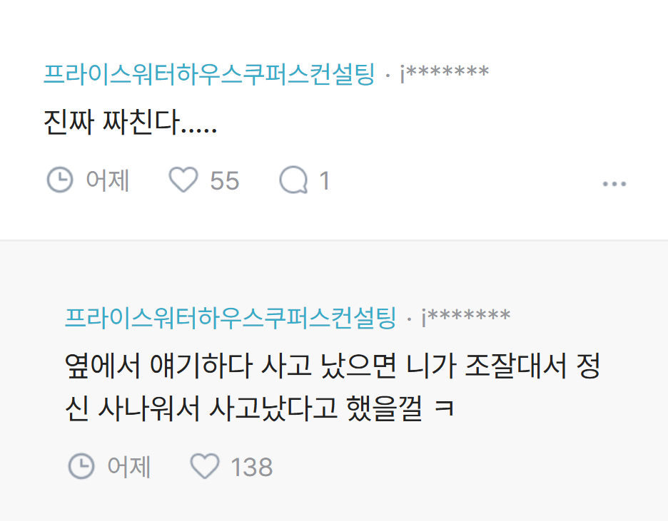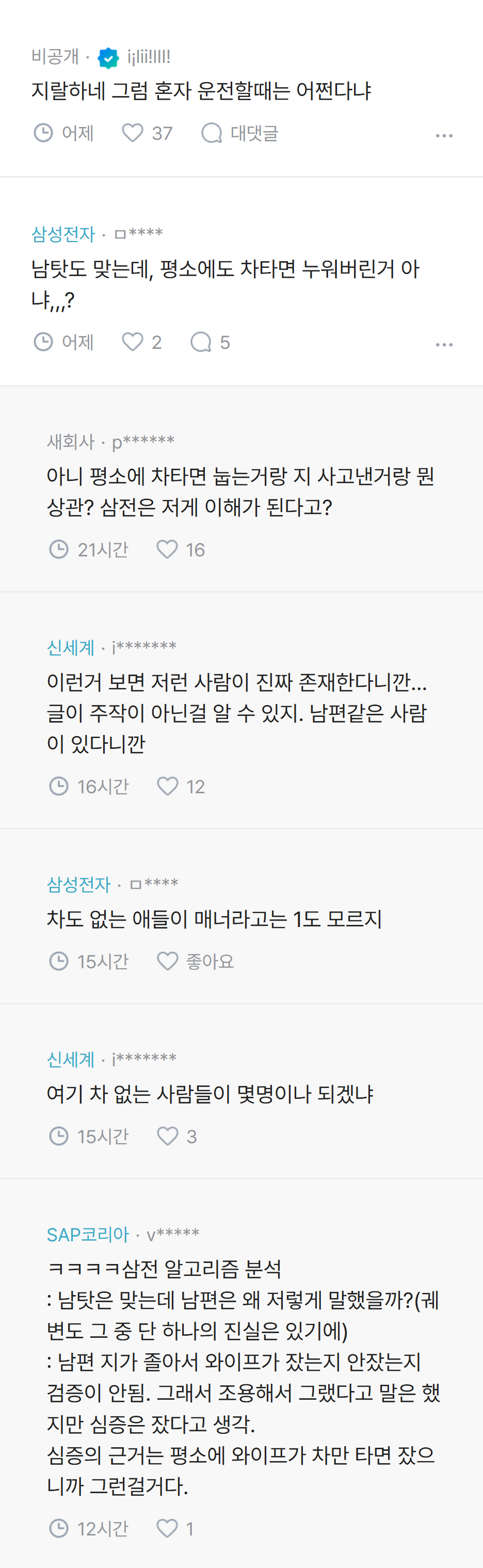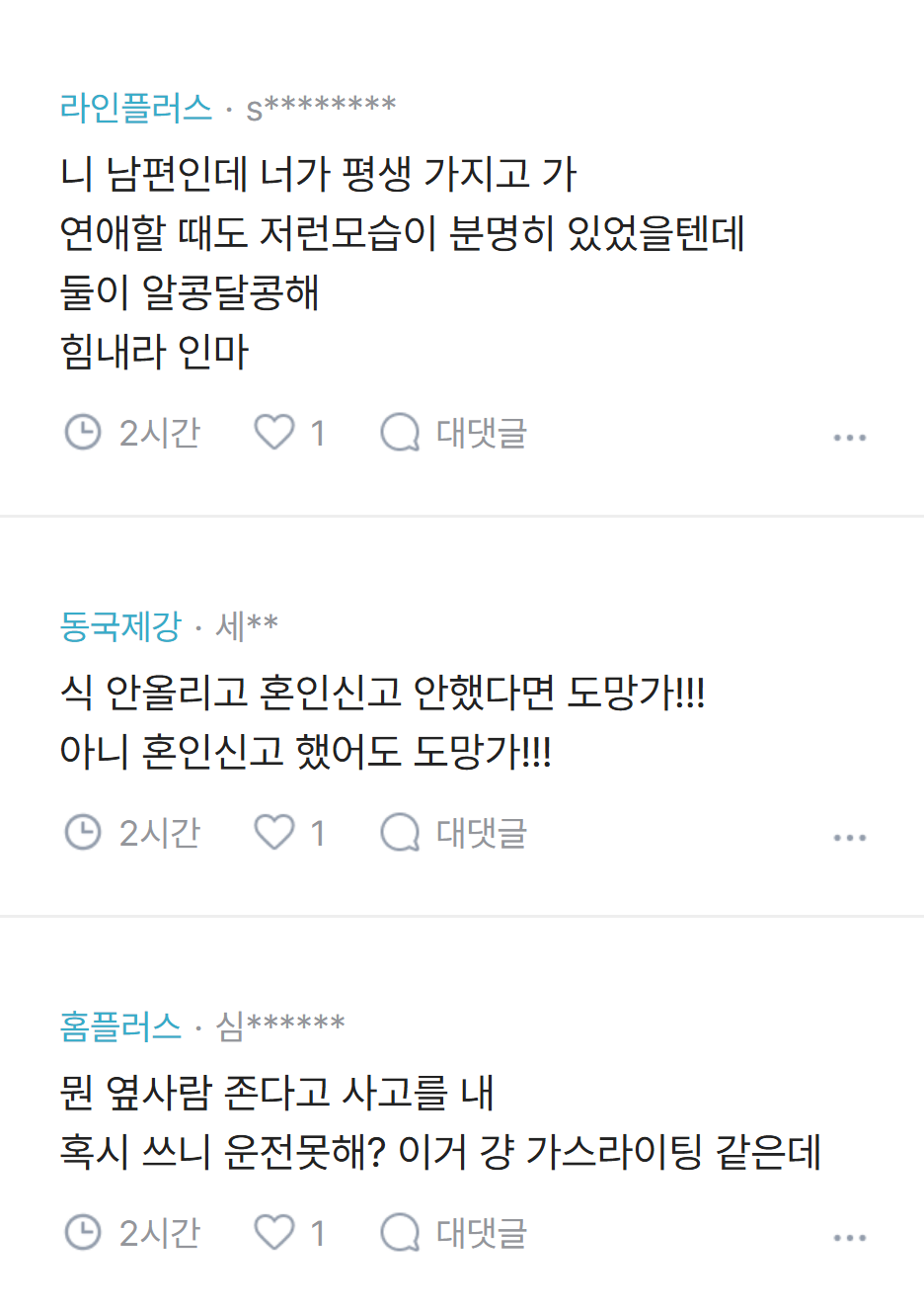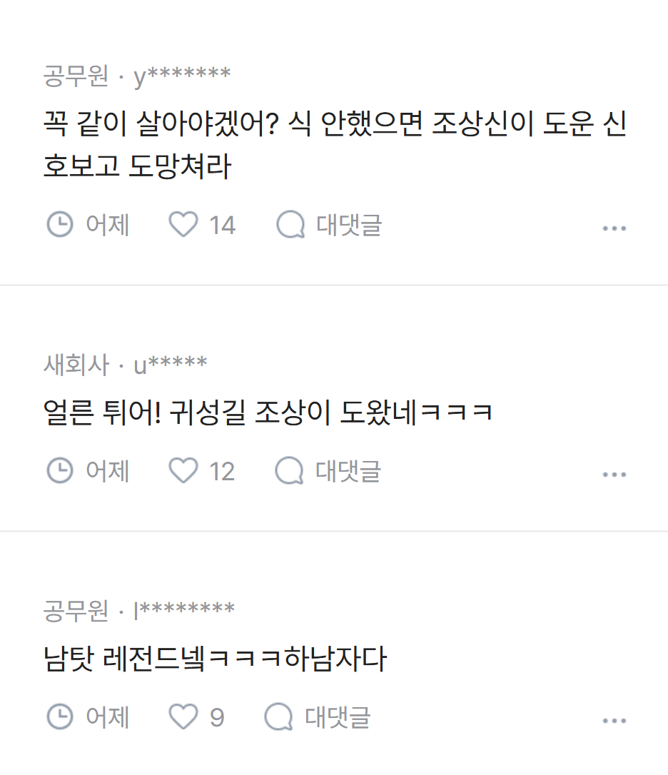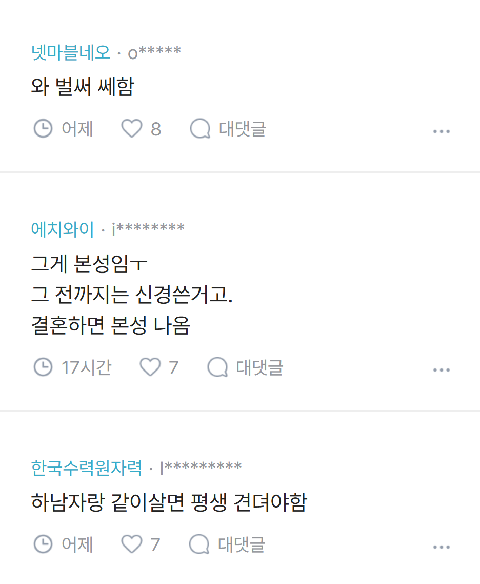 [흥미돋]남편이 귀성길에 졸다가 접촉사고 냈는데 내 탓이래.jpg 작성자pllo|작성시간26.02.20|조회수93,836 목록 댓글 137 글자크기 작게가 글자크기 크게가 출처: 여성시대 pllo 다음검색 현재 게시글 추가 기능 열기 북마크 공유하기 신고 센터로 신고 댓글 댓글 137 댓글쓰기 답글쓰기 댓글 리스트 작성자kiiikiii키야 | 작성시간 26.02.22 남탓 진짜 레전드고 진짜 후지다 ㅋㅋㅋ 작성자열라면열라맛있음 | 작성시간 26.02.22 역시 죠 ㅋㅋㅋㅋㅋ 작성자God김치 | 작성시간 26.02.22 ㅋㅋㅋㅋㅋㅋㅋㅋ 괜히 화풀이 작성자똴뚤 | 작성시간 26.02.22 파혼해야지 잠깐 쪽팔린게 낫다 작성자윤서쓰 | 작성시간 26.02.23 남탓 시벌 댓글 전체보기