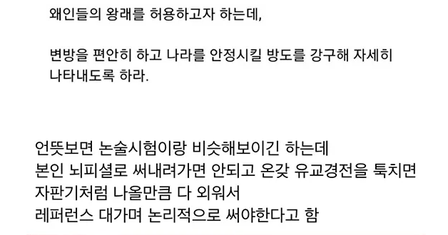 [스크랩] [흥미돋]조선시대 과거시험 난이도 체감하기 작성자folklore|작성시간26.02.21|조회수16,071 목록 댓글 26 글자크기 작게가 글자크기 크게가 다음검색 스크랩 원문 : 도탁스 (DOTAX) 현재 게시글 추가 기능 열기 북마크 공유하기 신고 센터로 신고 댓글 댓글 26 댓글쓰기 답글쓰기 댓글 리스트 답댓글 작성자홈런볼런홈 | 작성시간 26.02.21 언뇽하삽니까 세조 새끼가... 작성자오소리오솟 | 작성시간 26.02.21 광해군 질문쩐다 작성자뜝져럭 | 작성시간 26.02.21 너무좋아... 시험문제들이 이런 거라면 평생을 다 바쳐 공부해도 좋아...문제로 안 내도 논의하며 살고 싶어 작성자스플렌디드 | 작성시간 26.02.21 와 같이 고민하는?느낌이네 작성자코세척도소용없어 | 작성시간 26.02.21 일본새끼들 진짜 댓글 전체보기