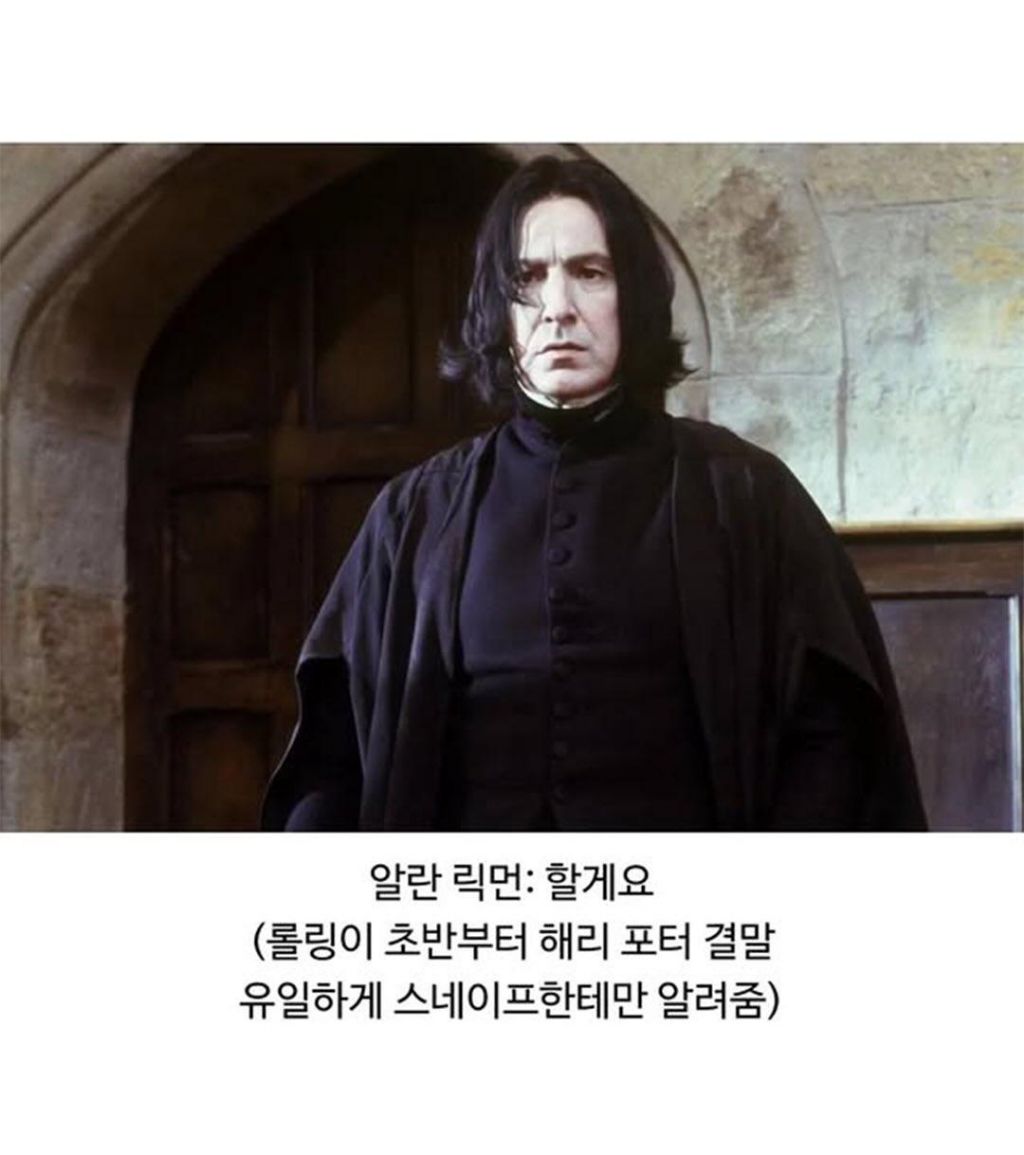 작성자치킨러버링 작성시간 26.02.21 스네이프 해리랑 첫만남에서 표정이 오묘했는데 뭔가 이유가 있었구나 알고 있어서 그랬나