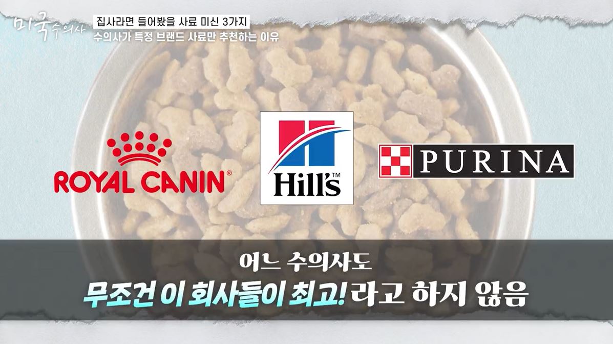수의사들이 힐스, 퓨리나, 로얄캐닌 같은 사료를 주료 추천하는 부분에서 사람들이