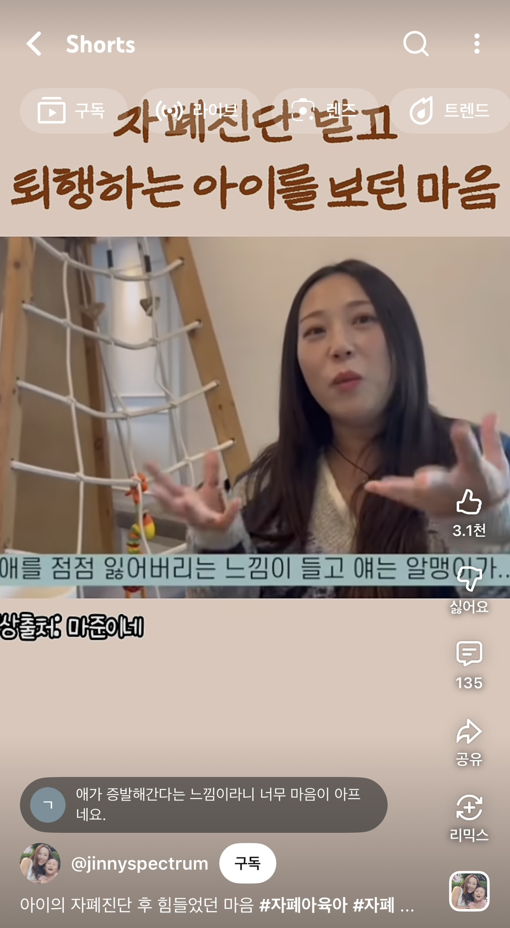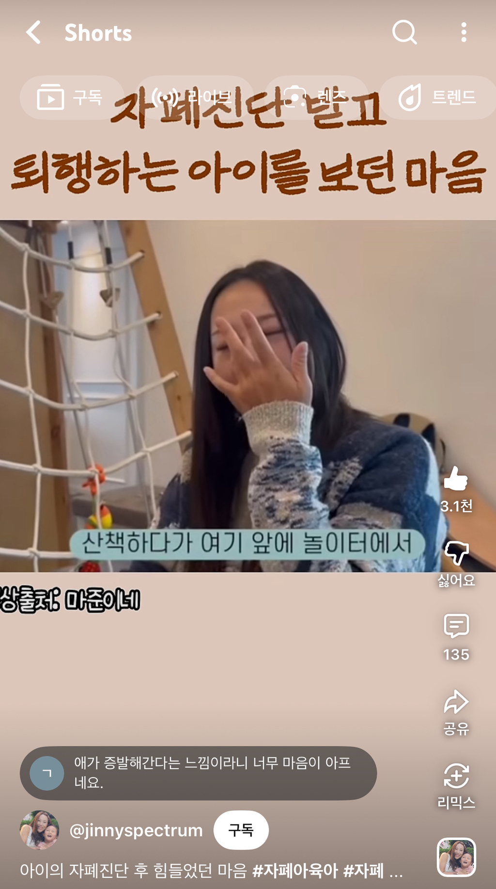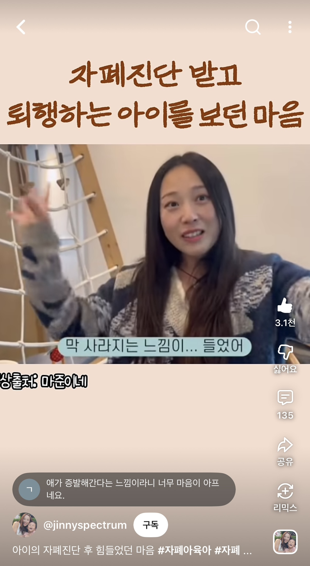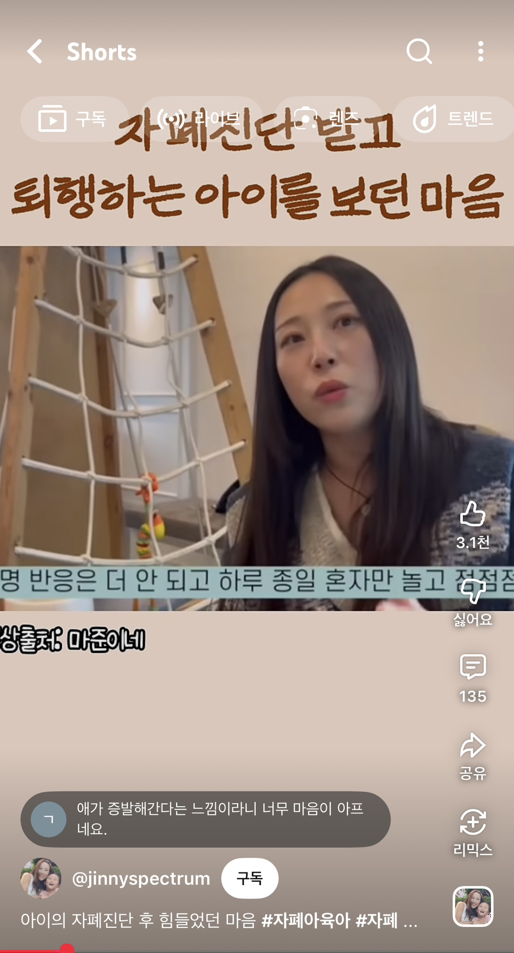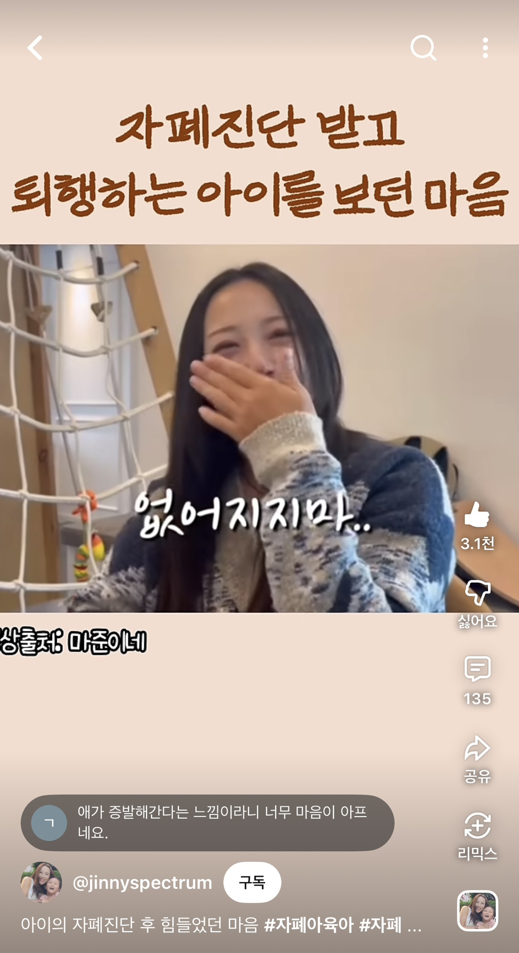 자폐가 저런건줄 몰라서 가져옴