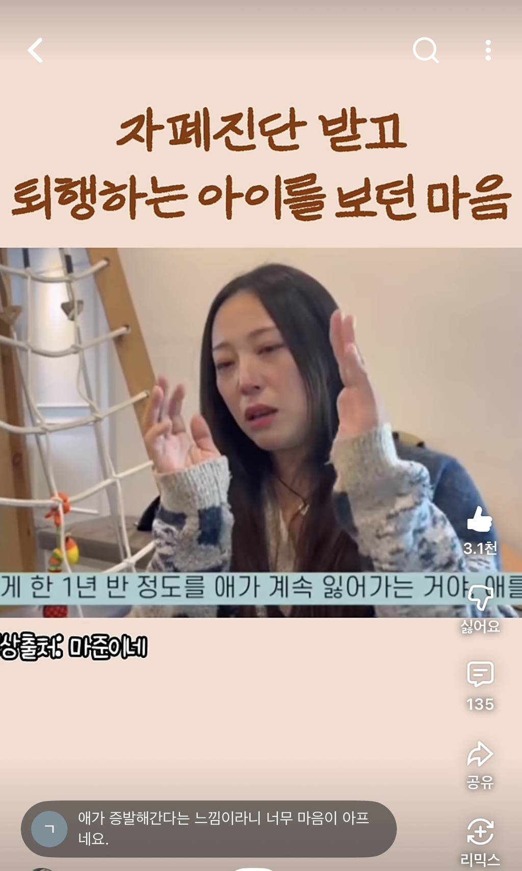 작성자딥치즈 베이컨 포테이토 작성시간 26.02.22 유튜브에서 보는데 잘웃고 소통 잘되고 멀쩡하다가 갑자기 저러더라 부모는 얼마나 힘들까ㅠ