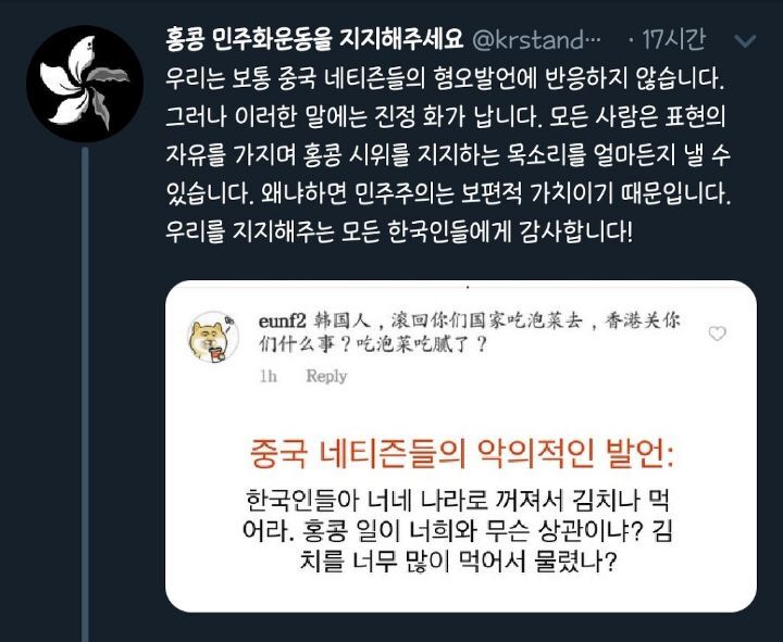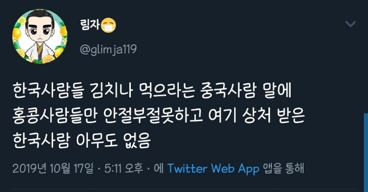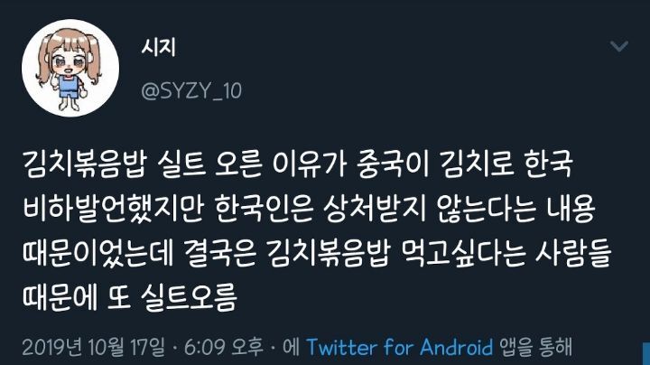 [스크랩] [흥미돋]중국인이 혐오발언하는데 한국인은 타격 없고 홍콩인들만 안절부절 못 했던 사건 작성자본인 닉네임.|작성시간26.02.21|조회수53,576 목록 댓글 68 글자크기 작게가 글자크기 크게가 출처 : 여성시대 Unica미방발단 : 홍콩 시위에 관심을 가지고 지지를 표하는 한국인들에게 중국인이 덕담(?)함전개 : 먹보들의 나라 인정위기 : 갑자기 자아성찰절정 : 민족성 뽐내기결론 : 아무튼 김치볶음밥 먹고 싶다🤟킬포 : 바로 엊그제인 19년도에 응~한국인 김치나 쳐먹어~ 이딴소리 해놓고 이제와서 김치는 즈그들 음식이라는 짱깨 클라스 다음검색 스크랩 원문 : *여성시대* 차분한 20대들의 알흠다운 공간 현재 게시글 추가 기능 열기 북마크 공유하기 신고 센터로 신고 댓글 댓글 68 댓글쓰기 답글쓰기 댓글 리스트 작성자두릅티김 | 작성시간 26.02.22 ㅋㅋㅋㅋㅋㅋㅋㅋㅋㅋㅋㅋ냠중국산 김치맛난다는게 모욕이지 작성자끼토산 | 작성시간 26.02.22 냠냠 작성자은밀한 김밥까페 | 작성시간 26.02.22 버터 두른 김볶밥 개땡기네 작성자민트조커 | 작성시간 26.02.22 오늘 저녁 김치전 작성자귀신이 고칼로리라고? | 작성시간 26.02.23 삼겹살 구워서 나온 기름에 익은김치+파김치 익혀서 거기에 또 밥 볶아서 먹고 싶다 존맛탱인데 댓글 전체보기