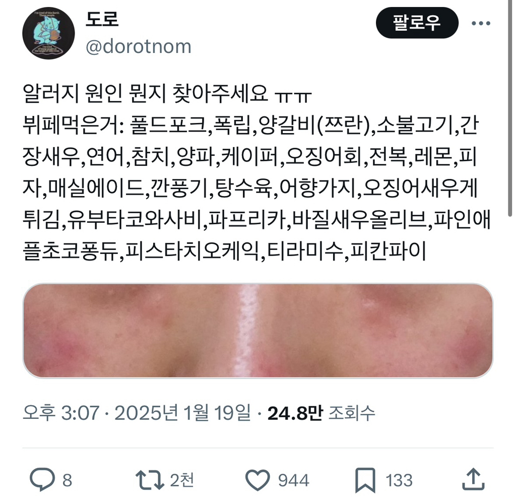 [흥미돋]하필 뷔페 갔다와서 알러지가... 작성자뉴누뉴|작성시간26.02.22|조회수122,602 목록 댓글 55 글자크기 작게가 글자크기 크게가 출처: https://theqoo.net/square/3579921426 다음검색 현재 게시글 추가 기능 열기 북마크 공유하기 신고 센터로 신고 댓글 댓글 55 댓글쓰기 답글쓰기 댓글 리스트 작성자왜그렇게생각해? | 작성시간 26.02.22 ㅋㅋㅋㅋ나도 저런적있었는뎈ㅋㅋㅋㅋ 몇년뒤에 원인찾음ㅠ 작성자너는뉘기야 | 작성시간 26.02.22 기억력도좋닼ㅋㅋㅋㅋㅋㅋㅋㅋㅋㅋ 작성자에리애비 | 작성시간 26.02.22 기엇력 ㅋㅋㅋㅋㅋㅋㅋㅋㅋㅋㅋㅋㅋㅋㅋㅋㅋㅋㅋㅋㅋㅋㅋㅋㅋㅋ 작성자((본인닉네임) | 작성시간 26.02.23 먹어서 낫게하자 작성자고고고고곡괭이 | 작성시간 26.02.25 ㅋㅋㅋㅋㅋ 아 에미넴 프사로 저말하니까 전래 웃기네ㅋㅋㅋㅋㅋ 댓글 전체보기