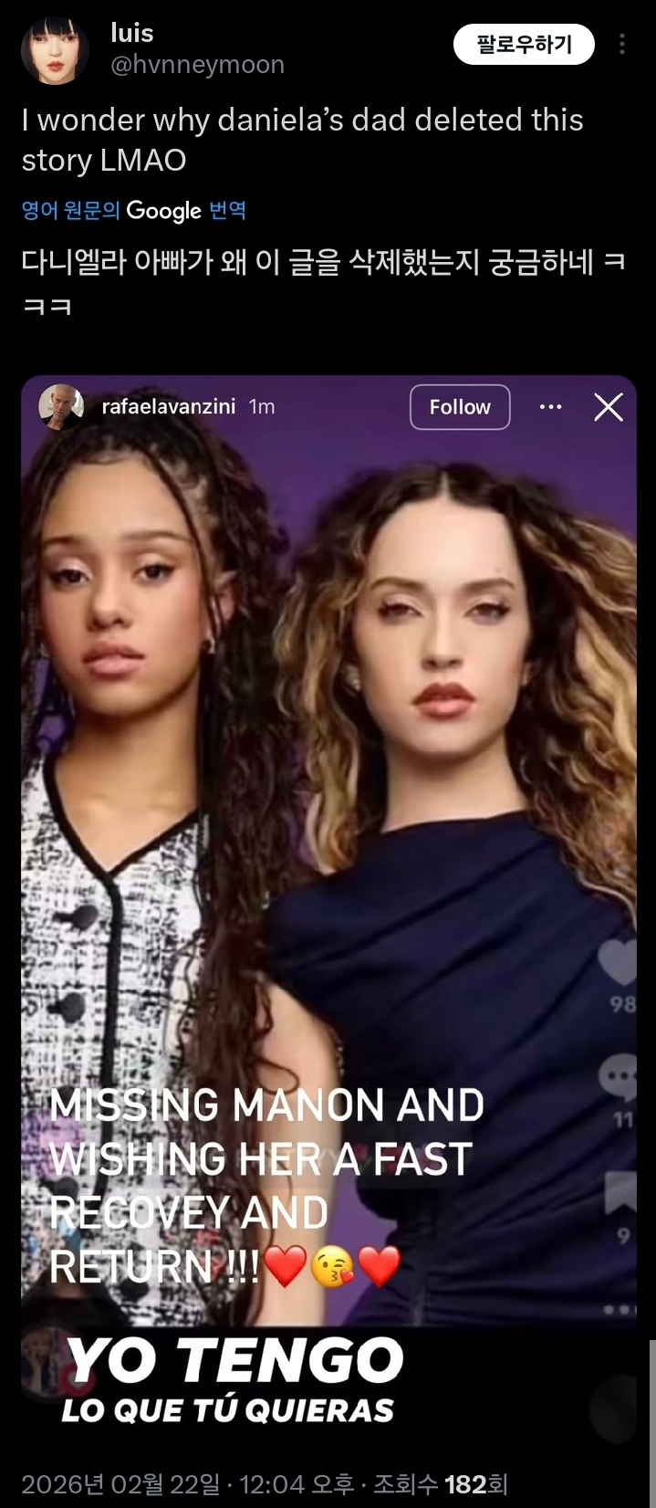 이와중에 같은 멤버인 다니엘라의 아버지가