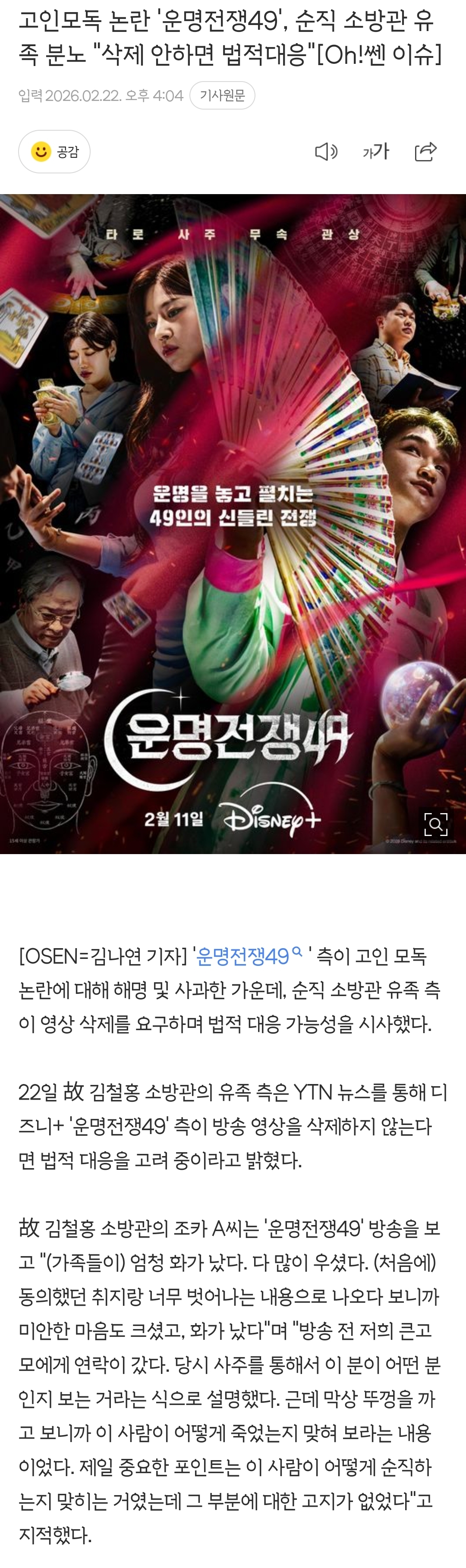 답댓글 작성자너ㅠ어쟞 작성시간 26.02.22 제일 중요한 포인트는 이 사람이 어떻게 순직하는지 맞히는 거였는데 그 부분에 대한 고지가 없었다