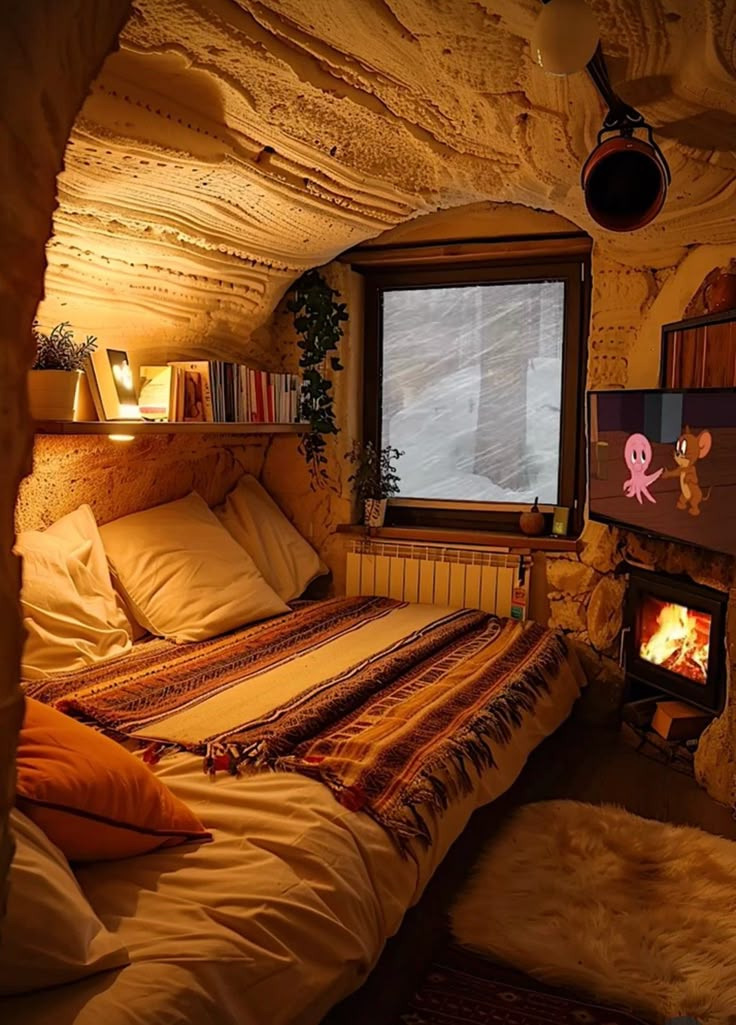 아늑하고 포근한 느낌을 주는 방안의 침대