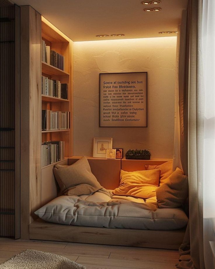 좋아하는 책을 읽으며 독서하는 알코브형 침대