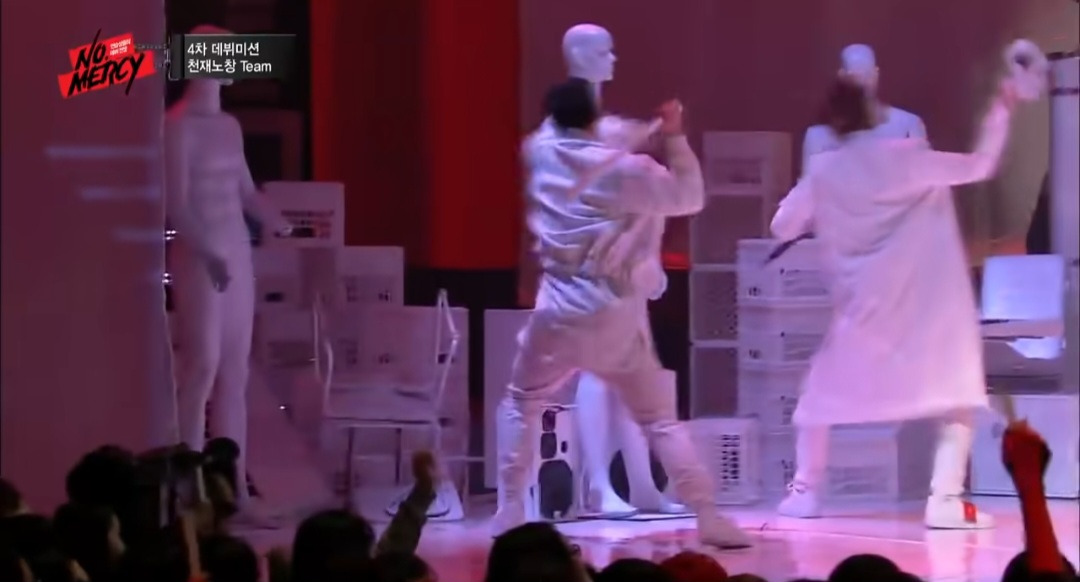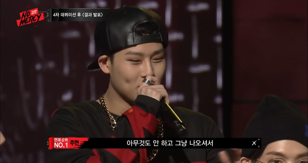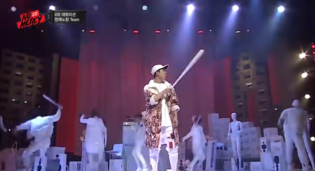 갑자기 이 분이 껌씹으면서 걸어 나옴 (셔누팀 프로듀서고 천재노창이라는 래퍼)