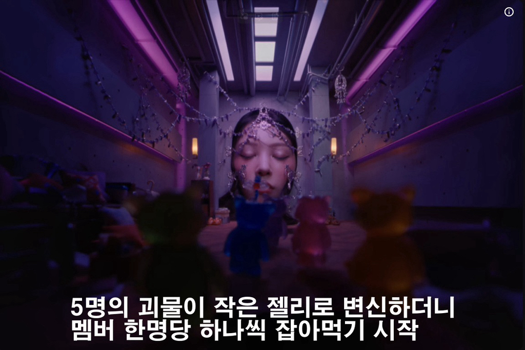 젤리어스 뮤비에서 하필 뉴진스 상징색으로 괴물 표현한 건 볼것도 없고