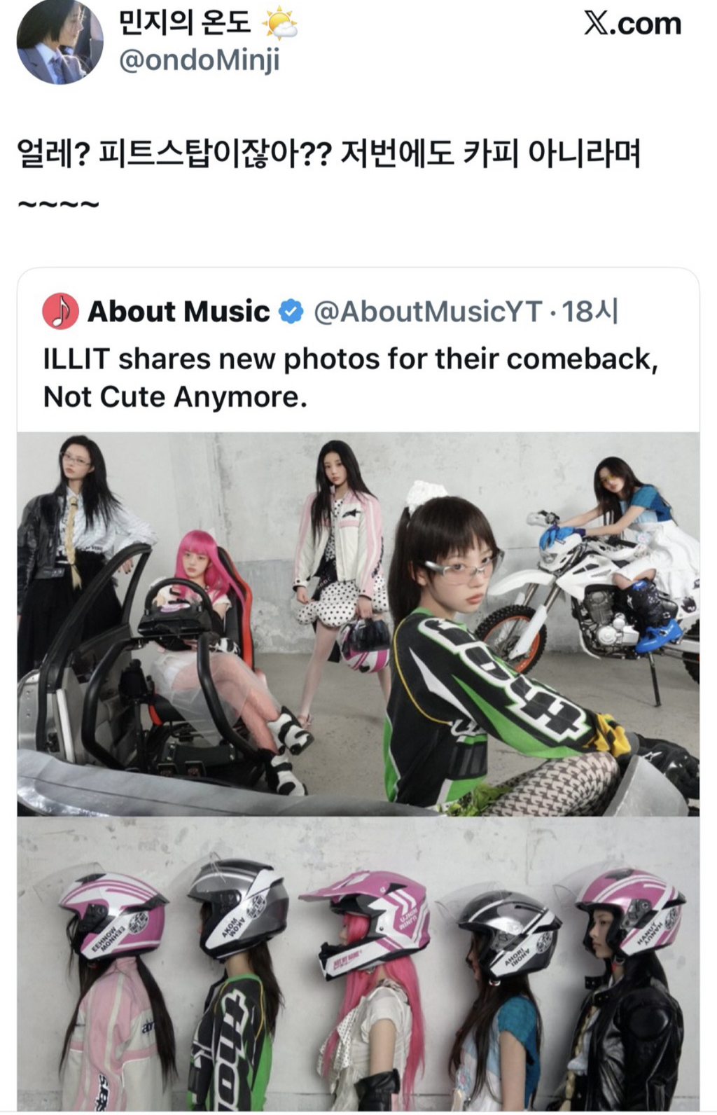 그동안 아일릿은 뉴진스 카피로 얼마나 곤욕을 치뤘는데 누가봐도 뉴진스 연상 시키는 무대와 요소들 모를리 없는데 아일릿 멤버들을 위해서라도 더는 뉴진스랑 엮이는게 없게 가는게 제일 좋을텐데 자꾸 연상 시키는 부분들을 넣으니까.. 회사가 일부러 이러나 생각이 듦
