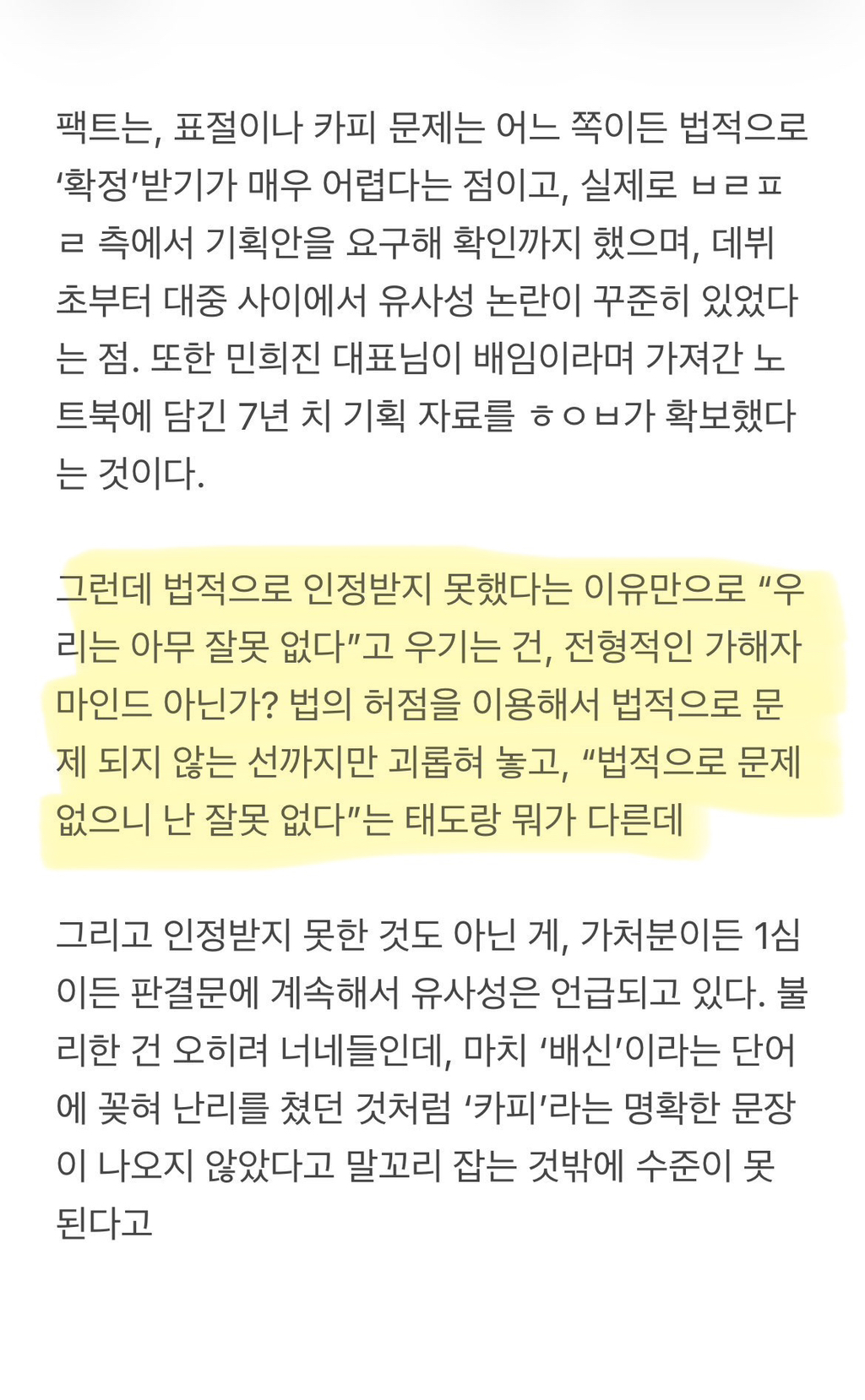 어제자 하이브 패소 법원 판결에서 뉴-아 표절 논란은 사회적 공론화가 필요할 것 같다고 나와서 찌는 글