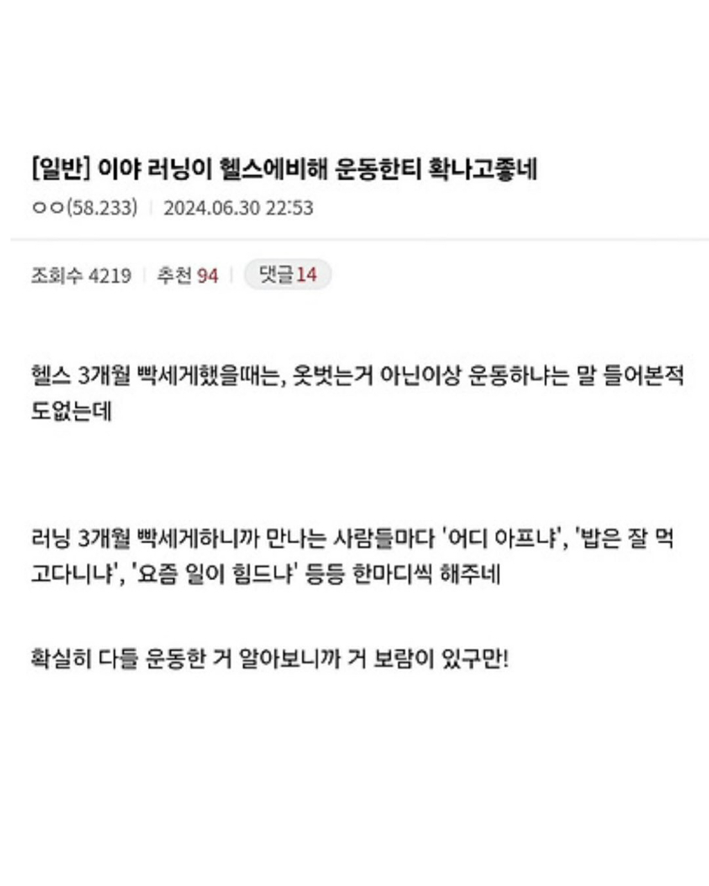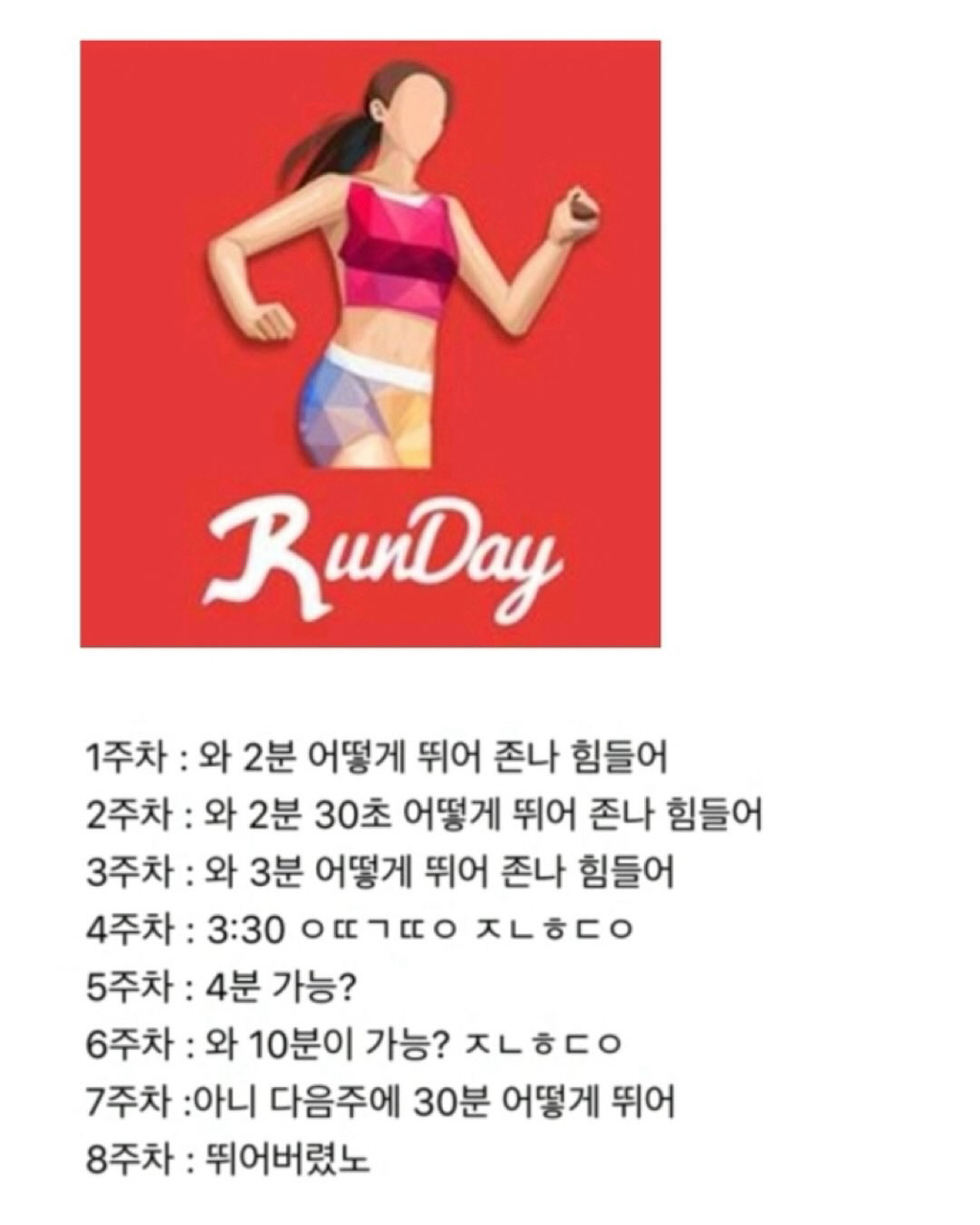 작성자삼색냥과 치즈냥 작성시간 26.02.23 런데이 너무 공감됔ㅋㅋㅋㅋㅋㅋㅋㅋ 지금부터 달리기를 시작합니다! 하면 몸이 터덜터덜 뛰고있음 ㅜㅜ