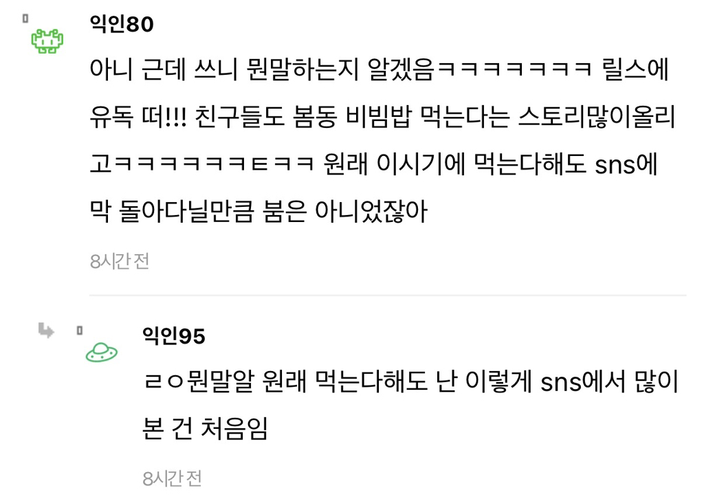 [스크랩] [흥미돋]요즘 봄동 바이럴 너무 심한것 같지 않아?2 작성자임태현|작성시간26.02.23|조회수10,683 목록 댓글 49 글자크기 작게가 글자크기 크게가 출처: https://www.instiz.net/name/65719686 다음검색 스크랩 원문 : *여성시대* 차분한 20대들의 알흠다운 공간 현재 게시글 추가 기능 열기 북마크 공유하기 신고 센터로 신고 댓글 댓글 49 댓글쓰기 답글쓰기 댓글 리스트 작성자어륀지어륀지 | 작성시간 26.02.23 봄동비빔밥 진짜 존나 맛있는데ㅠㅠ 작성자AsIam | 작성시간 26.02.23 이제 봄에 딸기 먹는 것도 바이럴이라 하겄네.. ㅋㅋㅋㅋㅋㅋ 작성자혐중일 | 작성시간 26.02.23 봄동 악플러ㅋㅋㅋㅋㅋ 작성자집에 가지마 | 작성시간 26.02.24 바이럴 뜻 몰라? 작성자돌섬 | 작성시간 26.02.25 너무웃곀ㅋㅋㅋㅋㅋㅋㅋㅋㅋㅋㅋㅋㅋ 봄동 바이럴 악플러 이러고 ㅋㅋㅋㅋㅋㅋㅋㅋㅋㅋㅋㅋㅋ 너무 좋은 유행같음 댓글 전체보기