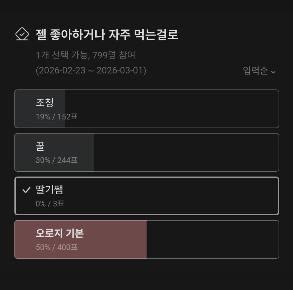 [흥미돋]따끈 말랑 가래떡 어떻게 먹는지 적고가기 작성자붕어빵무제한제공참말사건|작성시간26.02.23|조회수8,642 목록 댓글 127 글자크기 작게가 글자크기 크게가 출처: 여성시대 붕어빵무제한제공참말사건구운가래떡x 말랑쫀득갓뽑은가래떡o1. 조청2. 꿀3. 딸기쨈4. 순정일단 우리 집은 평생 딸기쨈에 먹음...나머지도 먹어는 봤는데일단 우리집은 가래떡=딸기쨈, 쑥절미=조청이었어기타 소스(?) 도 받습니다+ 오늘 내 세상이 무너졌어. 다음검색 현재 게시글 추가 기능 열기 북마크 공유하기 신고 센터로 신고 댓글 댓글 127 댓글쓰기 답글쓰기 댓글 리스트 작성자스피노티라노 | 작성시간 26.02.24 와 딸기쨈은 처음 봐 작성자쿄냥이 | 작성시간 26.02.24 간장 작성자홍시홍 | 작성시간 26.02.24 간장 작성자붕어빵무제한제공참말사건 작성자 본인 여부 작성자 | 작성시간 26.02.24 800명이 투표했는데 딸기쨈이 3명이라고.. 작성자정신차려험난한세상속에 | 작성시간 26.02.24 고추장 댓글 전체보기