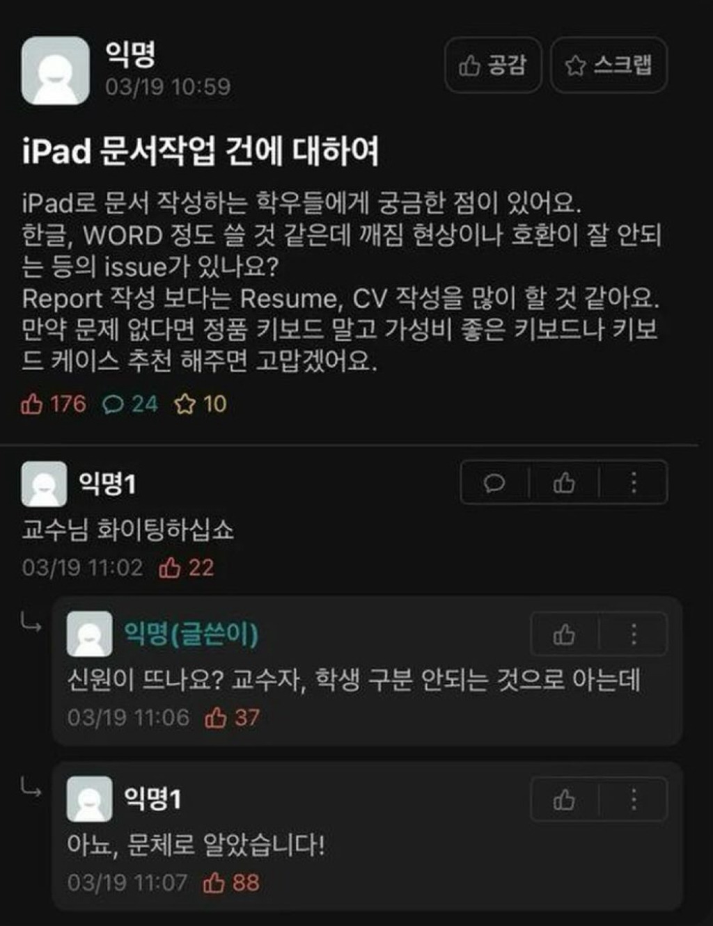 [스크랩] [흥미돋]iPad 문서작업 건에 대하여 작성자산왕의 사령탑|작성시간26.02.23|조회수10,310 목록 댓글 20 글자크기 작게가 글자크기 크게가 출처: 여성시대 남을베려하는사람 다음검색 스크랩 원문 : *여성시대* 차분한 20대들의 알흠다운 공간 현재 게시글 추가 기능 열기 북마크 공유하기 신고 센터로 신고 댓글 댓글 20 댓글쓰기 답글쓰기 댓글 리스트 작성자햄삐햅삐 | 작성시간 26.02.23 잌ㅋㅋㅋㅋㅋㅋ 작성자curens | 작성시간 26.02.23 iPad부터가 너무나 교수님이잨ㅎ아 작성자재명의 정치이야기! | 작성시간 26.02.23 교수자 ㅆㅂ 작성자억까그만 | 작성시간 26.02.23 추천해주면 고맙겠어요. 작성자오눅 | 작성시간 26.02.24 레주메를 교수님이 왜쓰시는데요 ㅋㅋㅋㅋㅋㅋㅋㅋㅋ 어디로 이직하시려고 ㅠ 댓글 전체보기