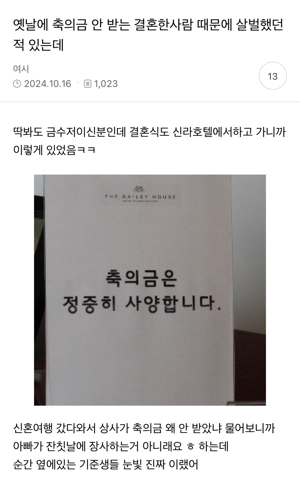 축의금 안 받는 결혼식 가본 여시들 꽤 많던데 난 아직