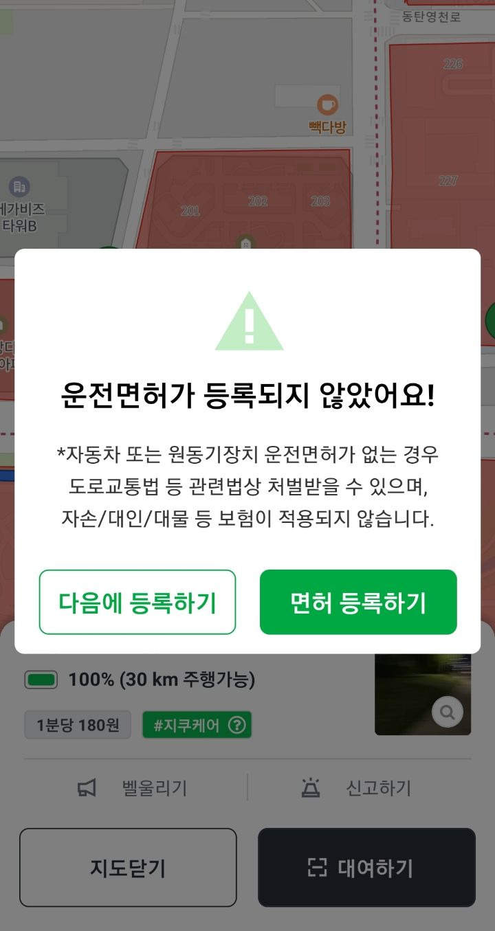면허를 인증하지 않아도 킥보드를 빌릴수 있음