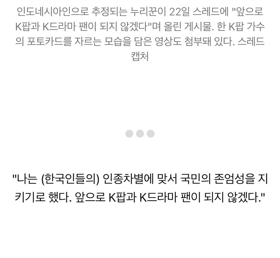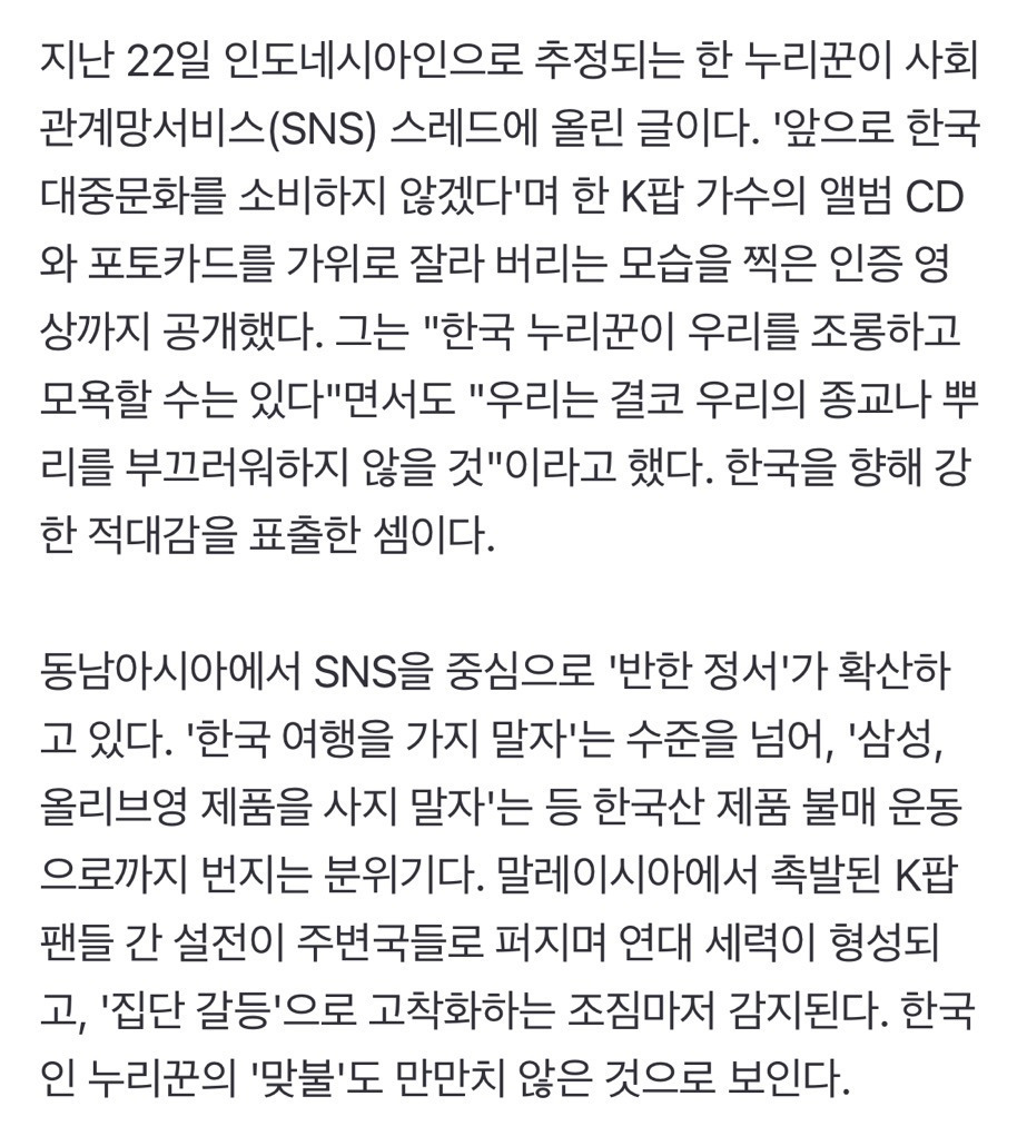 [스크랩] [여시뉴스데스크]"K팝 듣지 말자" "韓 기업 제품 No"… 동남아는 '한국산 불매 운동' 중 작성자입입입!|작성시간26.02.24|조회수17,396 목록 댓글 186 글자크기 작게가 글자크기 크게가 https://n.news.naver.com/article/469/0000915845?sid=104 다음검색 스크랩 원문 : 쭉빵카페 현재 게시글 추가 기능 열기 북마크 공유하기 신고 센터로 신고 댓글 댓글 186 댓글쓰기 답글쓰기 댓글 리스트 작성자하얀색 | 작성시간 26.02.25 그러던지 작성자왕수염냥 | 작성시간 26.02.25 아니 애초에 불매를 할 돈이 있어? 작성자숙취 | 작성시간 26.02.25 제발 해 작성자인생이너뭊같아요 | 작성시간 26.02.25 그러를 작성자자정 잉어 | 작성시간 26.03.01 돈도없잖아 애초에 댓글 전체보기