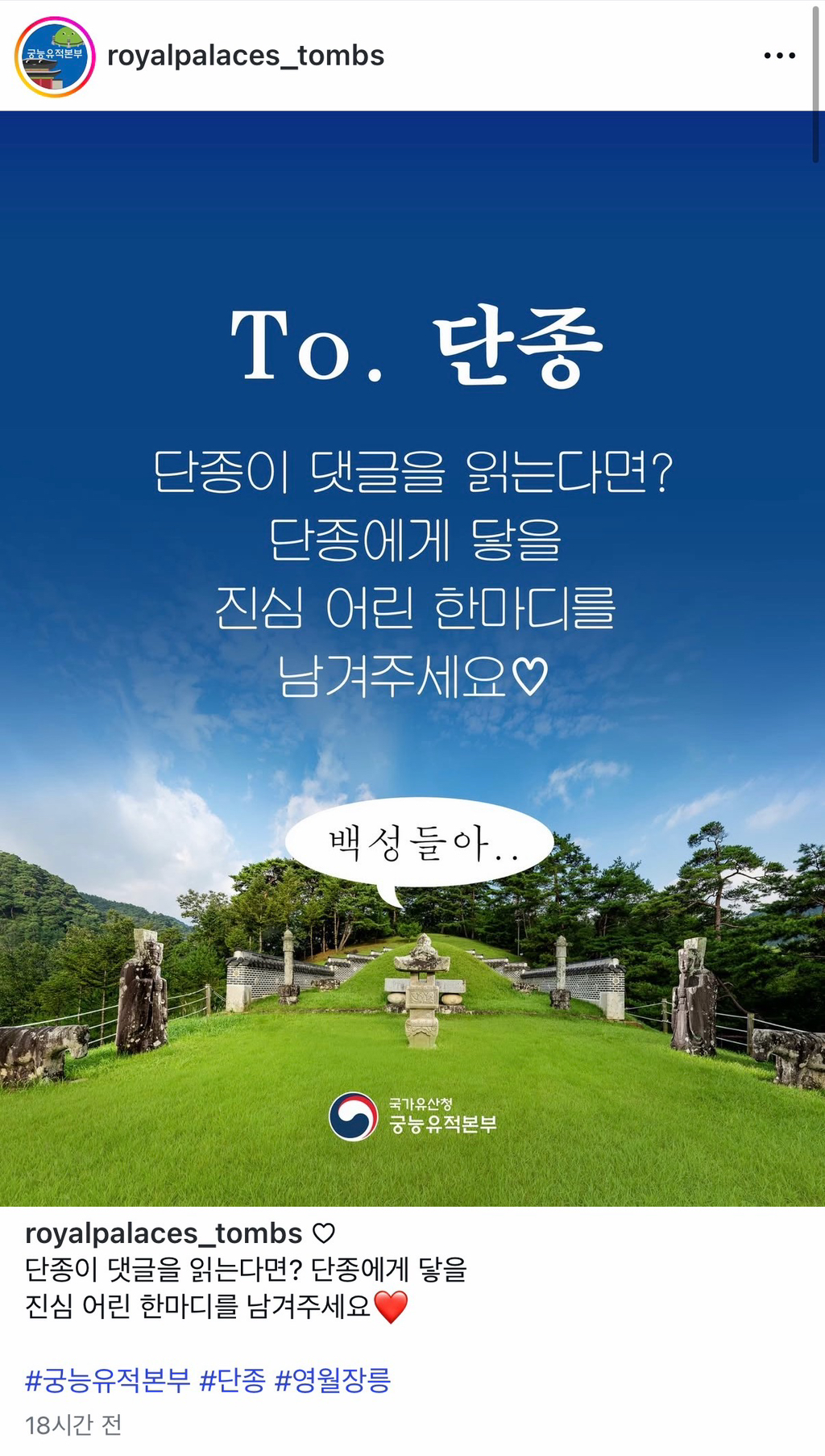 [흥미돋]단종붐에 탑승한 국가유산청 인스타 작성자벌거벗은한국사|작성시간26.02.24|조회수58,587 목록 댓글 56 글자크기 작게가 글자크기 크게가 출처: https://www.instagram.com/p/DVFt65jkfW3백성들아..ㅋㅋㅋㅋㅋㅋㅋㅋㅋ 다음검색 현재 게시글 추가 기능 열기 북마크 공유하기 신고 센터로 신고 댓글 댓글 56 댓글쓰기 답글쓰기 댓글 리스트 작성자녀부제용..? | 작성시간 26.02.24 아니 근데 폰트 저게 뭐야....? 작성자쿠키런킹 | 작성시간 26.02.24 ㅅㅂㅋㅋㅋㅋㅋㅋㅋㅋㅋㅋㅋㅋㅋㅋㅋㅋㅋㅋㅋㅋㅋㅋㅋ 작성자박하 | 작성시간 26.02.24 ㅋㅋㅋㅋㅋㅋㅋㅋㅋ 작성자Vegeteria | 작성시간 26.02.24 국가유산청엔 디자이너가안계신건가요.... ?굴림체.... ? 작성자hle zeus | 작성시간 26.02.24 폰트가 저래서 더 웃긴데 ㅋㅋㅋㅋ 댓글 전체보기