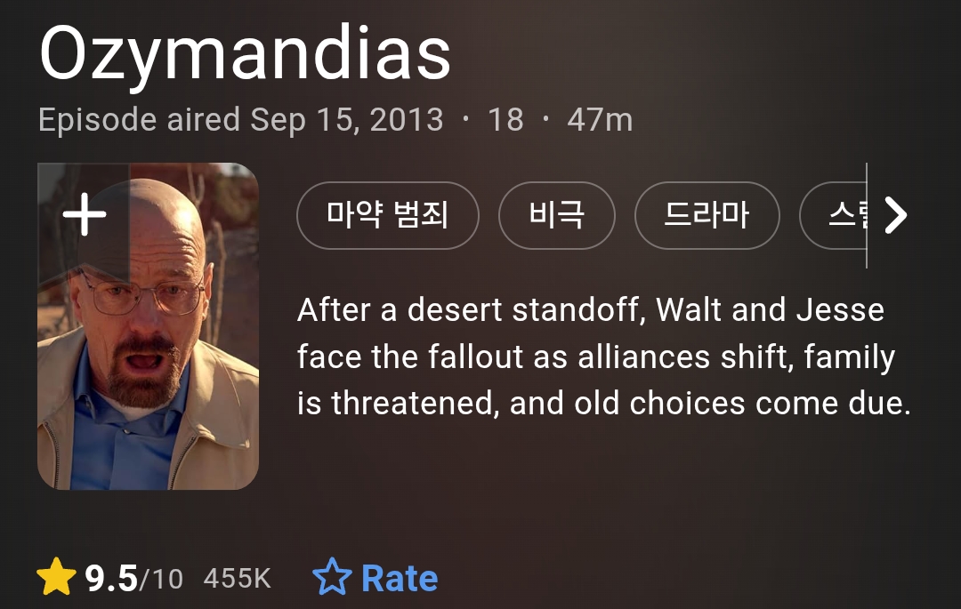 [흥미돋]13년 만에 깨진 '브레이킹 배드' 10점 평점 작성자Ywnakz|작성시간26.02.24|조회수12,251 목록 댓글 28 글자크기 작게가 글자크기 크게가 출처: 여성시대 Ywnakz왕겜 프리퀄이 10점 만점으로 역대급 반응을 얻음브배 팬덤 : 13년간 우리가 역대 최고였는데 어딜감히?왕겜 드라마 안보고 1점 주고 평점 테러해서 10점에서 떨어트림왕겜 팬 : ?????? 왜 여기에다 난리임?복수 ㄱㄱ브배 팬덤의 자랑 10점 평점 에피 9.5까지 하락 엔딩 다음검색 현재 게시글 추가 기능 열기 북마크 공유하기 신고 센터로 신고 댓글 댓글 28 댓글쓰기 답글쓰기 댓글 리스트 답댓글 작성자꿈쟁이 | 작성시간 26.02.24 개미췽넘임 답댓글 작성자스티브 | 작성시간 26.02.24 꿈쟁이 오예 봐야지 작성자NiKe | 작성시간 26.02.24 브배 다시 봐야겟다 작성자존나관대한여시 | 작성시간 26.02.24 나도봐야지 작성자족빵매야 | 작성시간 26.02.24 브배 저 편 무슨편이지 아 또 브배 땡기네 댓글 전체보기