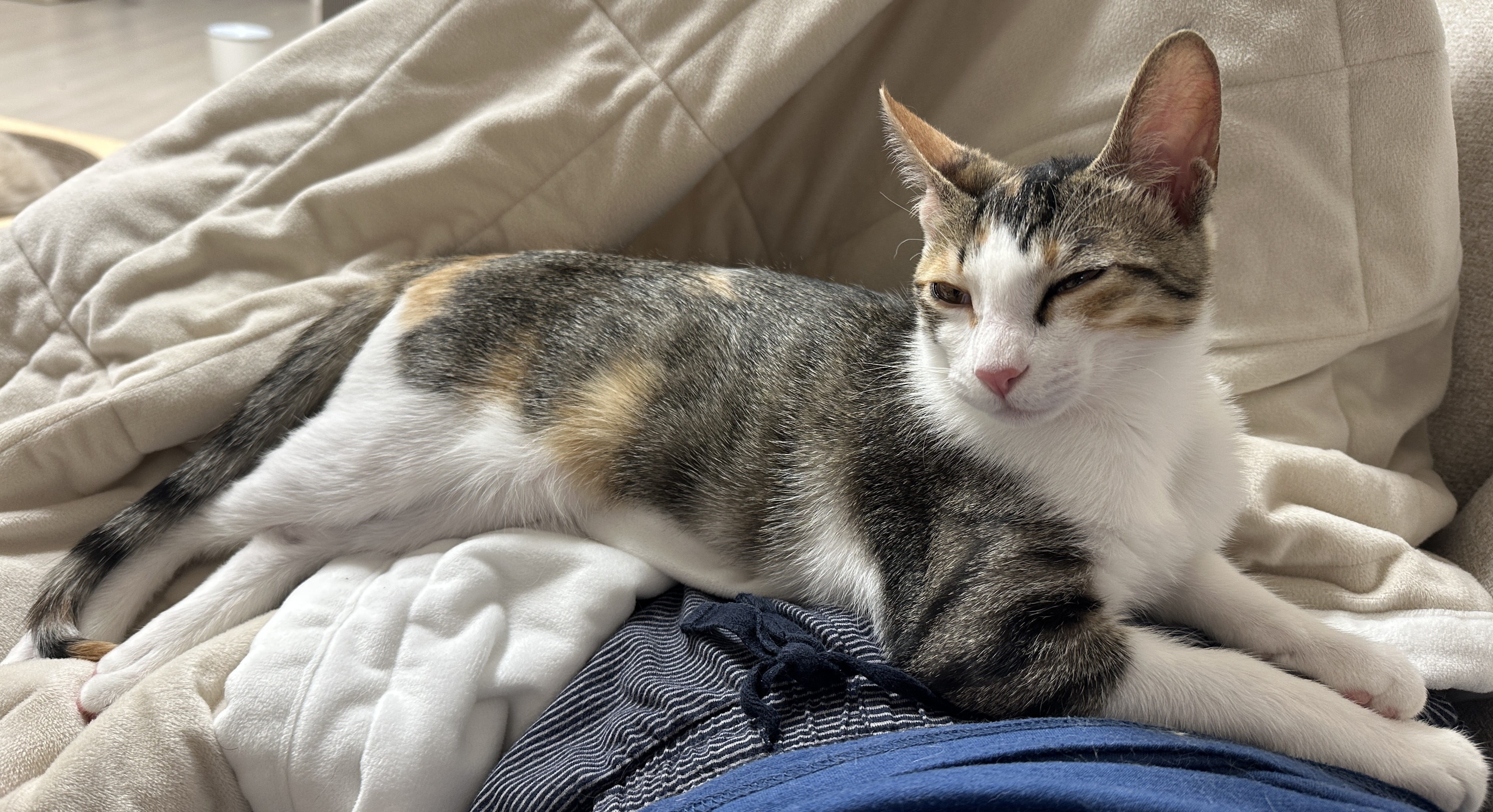 혼자서도 잘놀고, 무릎에 올라와서 손에 그루밍도 해주는 사랑둥이