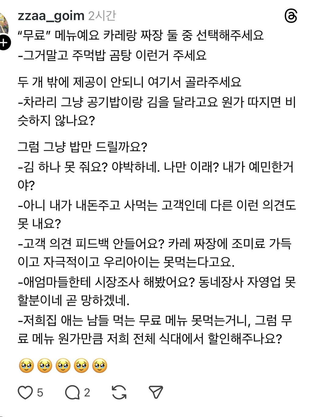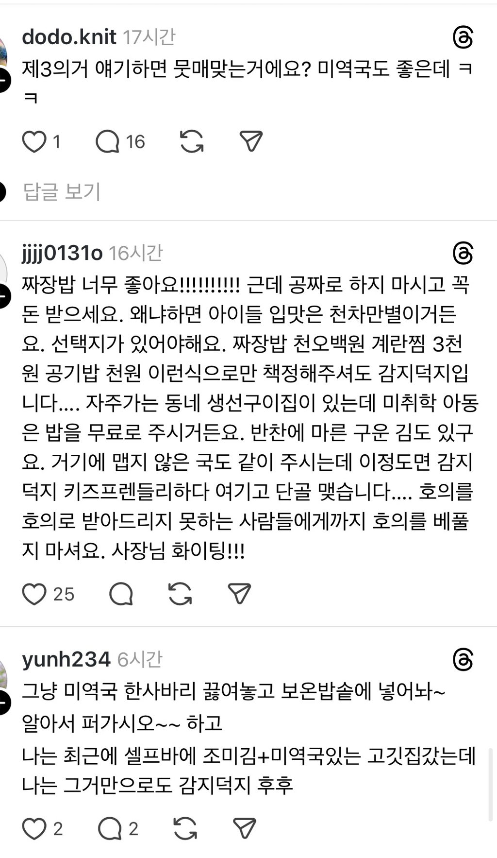 짜장밥 말고 미역국 어떠냐하는게 그게 ㄹㅇ 대중적이라그럴걸 ㅠ 짜장말고 딴거없냔 소리 ㅈㄴㅈㄴ함