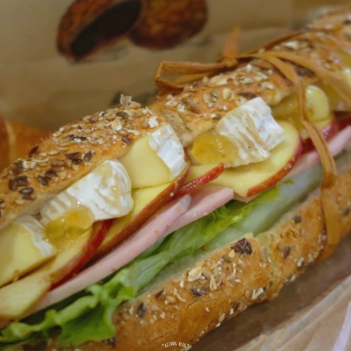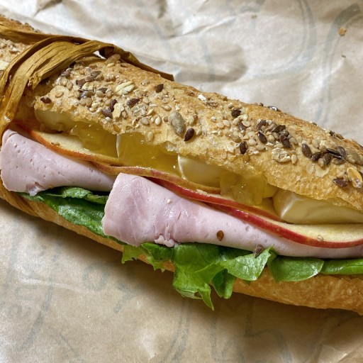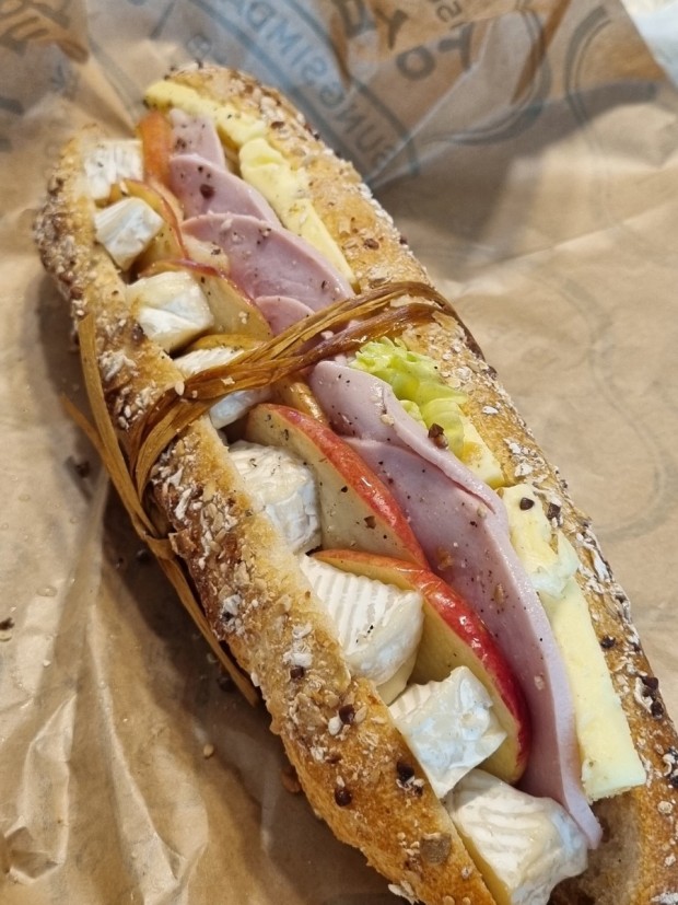 귀리 바게뜨에 브리치즈랑 얇게 저민 사과랑