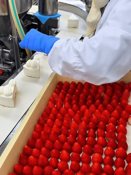 아 딸기 한줄인줄 알고 단면은 왜 두개지했는데 옆에서 또 한줄 더 쌓는구나