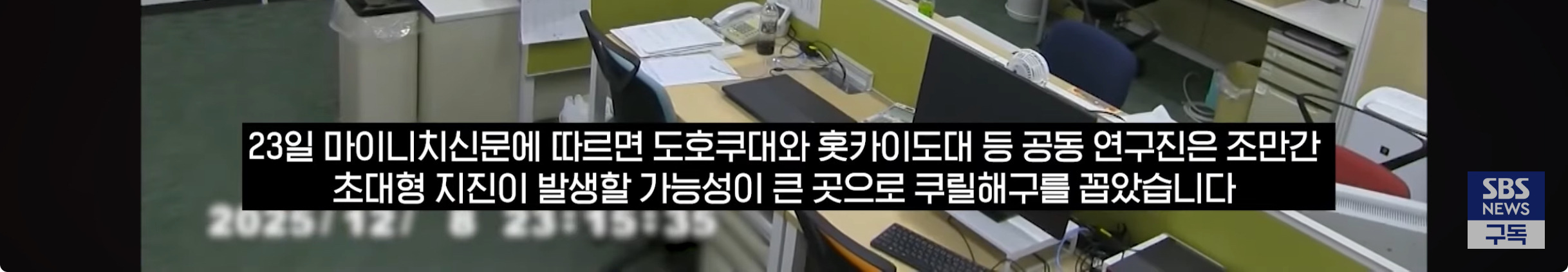 [여시뉴스데스크]조만간 일본 대지진 관측 또 나왔다, 20m 쓰나미 대앙 닥치면 한국은? 작성자(본인닉네임).|작성시간26.02.24|조회수13,072 목록 댓글 36 글자크기 작게가 글자크기 크게가 출처: https://youtu.be/bMHReTcgGAc?si=R_UDLCZ3T2kJk2Gm 다음검색 현재 게시글 추가 기능 열기 북마크 공유하기 신고 센터로 신고 댓글 댓글 36 댓글쓰기 답글쓰기 댓글 리스트 작성자고습도치의 습겪 | 작성시간 26.02.24 드디어!! 작성자예민쓰피곤쓰 | 작성시간 26.02.24 제발 주궈줘 작성자난이제지졌어요땡뻘 | 작성시간 26.02.25 언제와.... 작성자꼰대핑 | 작성시간 26.02.25 우리나라 동쪽은 걱정인데 ㅠㅠ 작성자행복가득가득만땅 | 작성시간 26.02.25 하 언제 옴요 ㅠ 댓글 전체보기