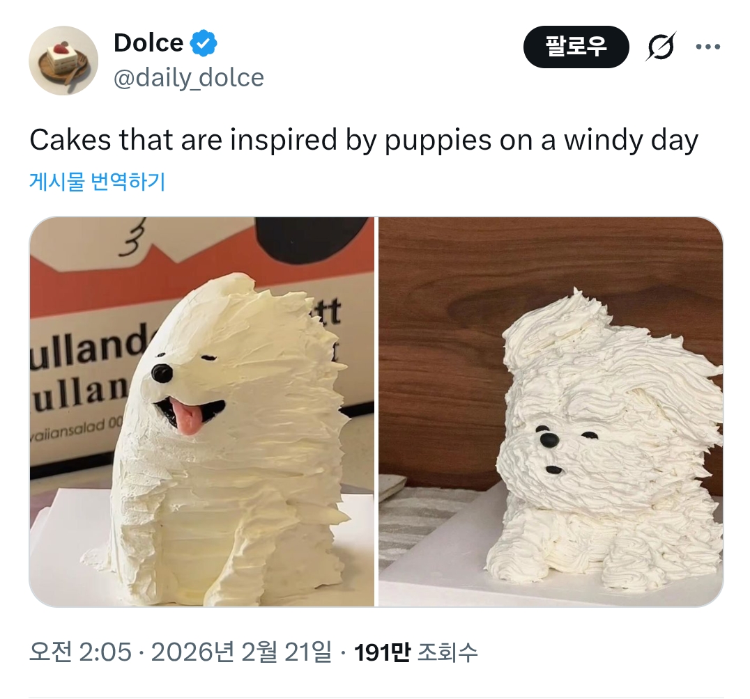 [흥미돋]바람 부는 날 강아지들에게서 영감을 받은 케이크 작성자Ocwajf|작성시간26.02.24|조회수39,978 목록 댓글 11 글자크기 작게가 글자크기 크게가 출처: https://x.com/daily_dolce/status/2024893057766953213?s=20 다음검색 현재 게시글 추가 기능 열기 북마크 공유하기 신고 센터로 신고 댓글 댓글 11 댓글쓰기 답글쓰기 댓글 리스트 작성자겨울완전싫어 | 작성시간 26.02.24 갸아아아아아 작성자말랑곤약 | 작성시간 26.02.24 앜ㅋㅋㅋㅋㅋㄱ너무 귀여워ㅜㅜ 작성자nonsense | 작성시간 26.02.24 아 미친 너무귀엽다ㅠㅠㅠㅠㅠㅠ 작성자대체휴무 | 작성시간 26.02.25 아까워어케먹나 작성자그럴수도 있다 | 작성시간 26.03.15 ㅈㄴ귀욥다 ㅜㅜ 댓글 전체보기