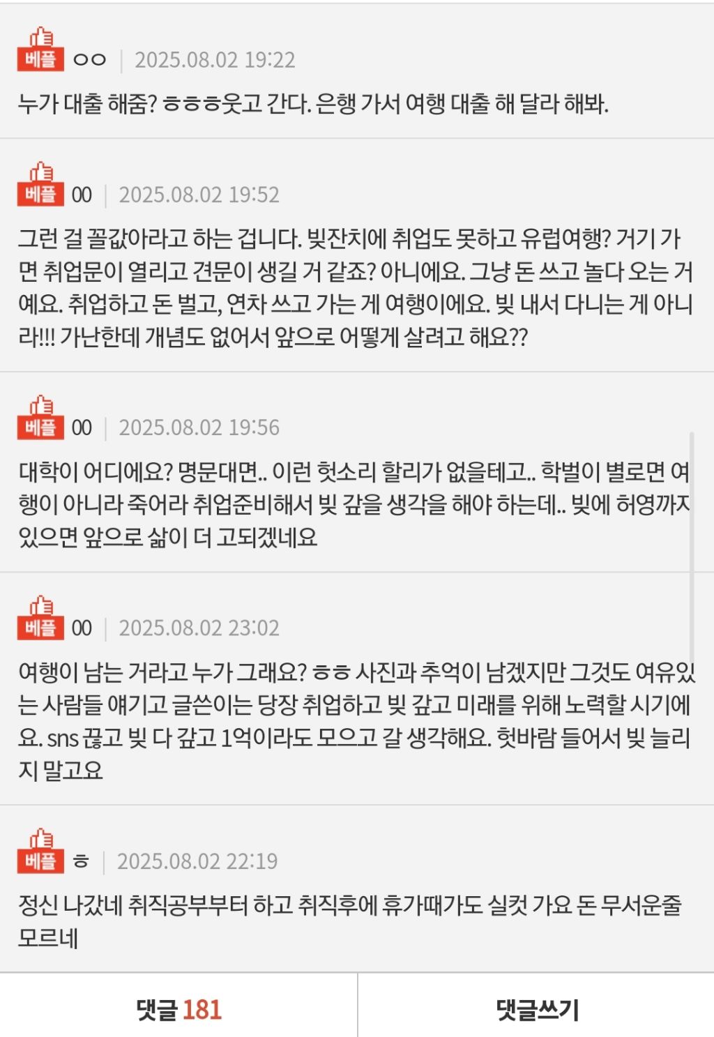 작성자Bknn 작성시간 26.02.25 다들 너무 뭐라하는거같네.. 난 무리해서라도 꼭 가고싶으면 가는게맞다 생각하는데 갔다와서 취업못하면 알바라도 하겠지