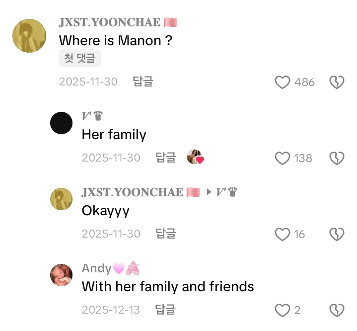 다같이 다니엘라 집에 모였는데 마농만 없었음