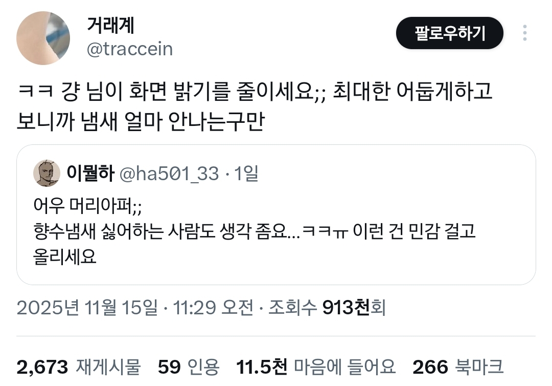 왜 불편한 사람들이 꾸역꾸역 냄새 안 나게 노력해야하는지 모르겟음