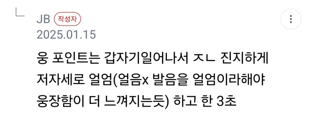 [스크랩] [흥미돋]꿀팁추천) 집에서 잔소리할때 벌떡일어나서 이정재처럼 얼엄!!!!!!!!!!!!하면됨 작성자빌려온 호랑이|작성시간26.02.25|조회수10,407 목록 댓글 17 글자크기 작게가 글자크기 크게가 출처: https://m.cafe.daum.net/ok1221/9a8f/62438672?svc=cafeapp쭉빵카페10대, 20대 여성커뮤니티 [쭉빵카페] 입니다.m.cafe.daum.net 다음검색 스크랩 원문 : *여성시대* 차분한 20대들의 알흠다운 공간 현재 게시글 추가 기능 열기 북마크 공유하기 신고 센터로 신고 댓글 댓글 17 댓글쓰기 답글쓰기 댓글 리스트 작성자이츠실제상황 | 작성시간 26.02.25 ㅅㅂㅋㅌㅌㅋㅌㅌㅌㅋㅋ개노답 삼촌같애 작성자땡초귀여움 | 작성시간 26.02.26 얼엄권ㅋㅋㅋㅋㅋㅋㅋㅋㅋㅋㅋㅋㅋㅋ 작성자얼그레이웨하스 | 작성시간 26.02.26 얼엄ㅋㅋㅋㅋㅋㅋㅋㅋㅋㅋㅋㅋㅋㅋ 작성자아그렇규나 | 작성시간 26.02.26 ㅋㅋㅋㅋㅋㅋㅋㅋ걍 드뎌 정신까지 나갔나 싶어서 안하게되는거아니야 ㅋㅋㅋㅋㅋㅋㅋㅋㅋㅋㅋㅋㅋㅋㅋㅋㅋㅋ 작성자아무닉네임임 | 작성시간 26.02.27 ㅋㅋㅋㅋㅋㅋㅋㅋㅋㅋㅋㅋㅋㅋㅋㅋㅋㅋㅋㅋㅋㅋㅋ 댓글 전체보기