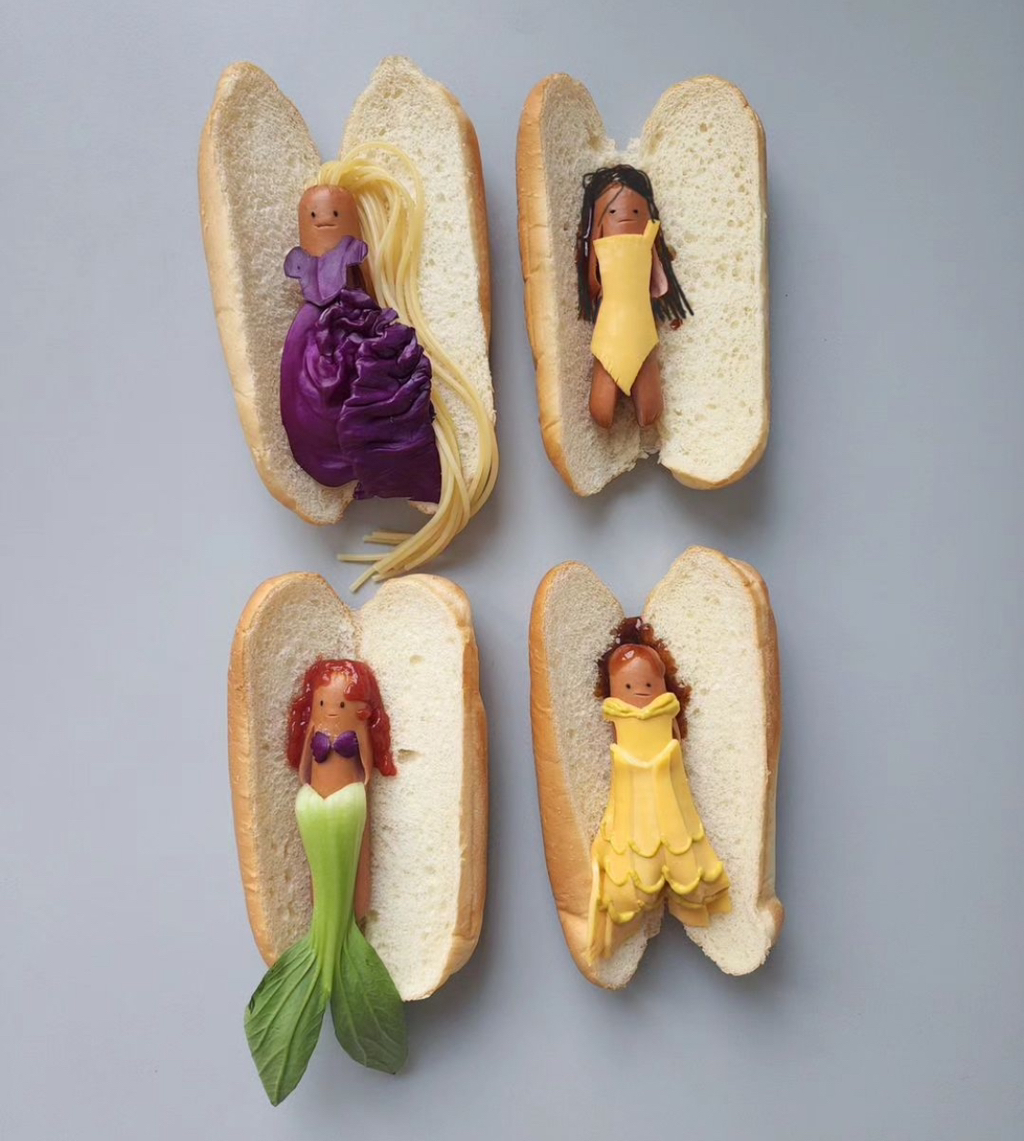 소세지랑 파스타 면으로 만든 디즈니 공주