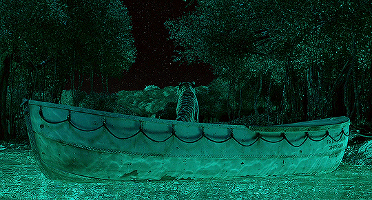 하지만 모두를 놀라게 만든건 바로 보트 아래에 몸을 숨기고 있던 벵골 호랑이 '리처드 파커'. 배고픔에 허덕이는 동물들은 서로를 공격하고 결국 파이와 리처드 파커만이 배에 남게 되는데
