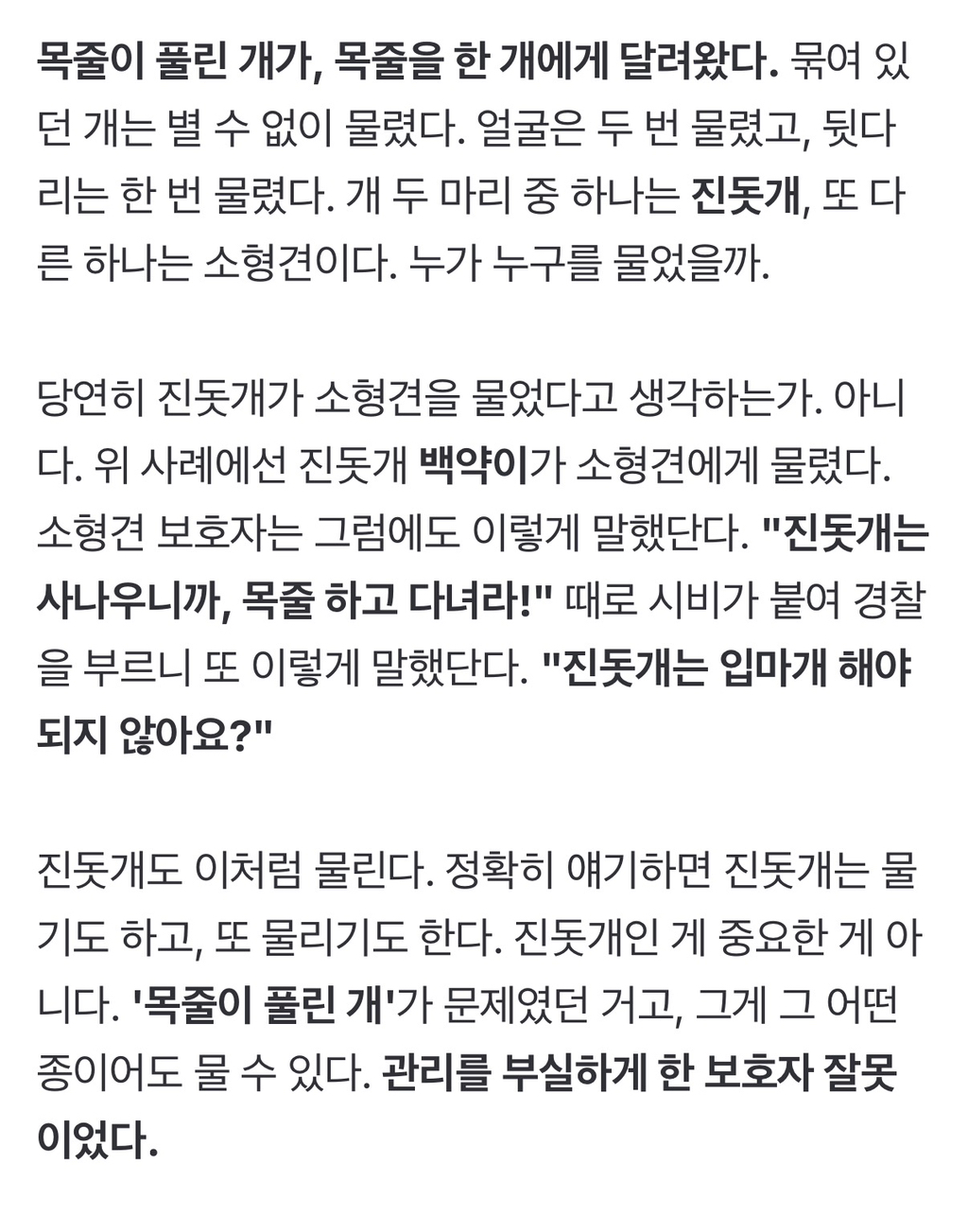 작성자맵다매워 작성시간 26.02.26 목줄한 진돗개와 목줄안한 소형견중 목줄한 진돗개가 더 문제있을거라고 생각하는게 진짜 무식한발상이다 소형견 견주이지만 소중대 상관없이 오프리쉬는 다 욕쳐먹어야해 그리고 진도나 믹스진도 운동장에서 만나면 다 매너좋아 나보다 점잖은것같어..