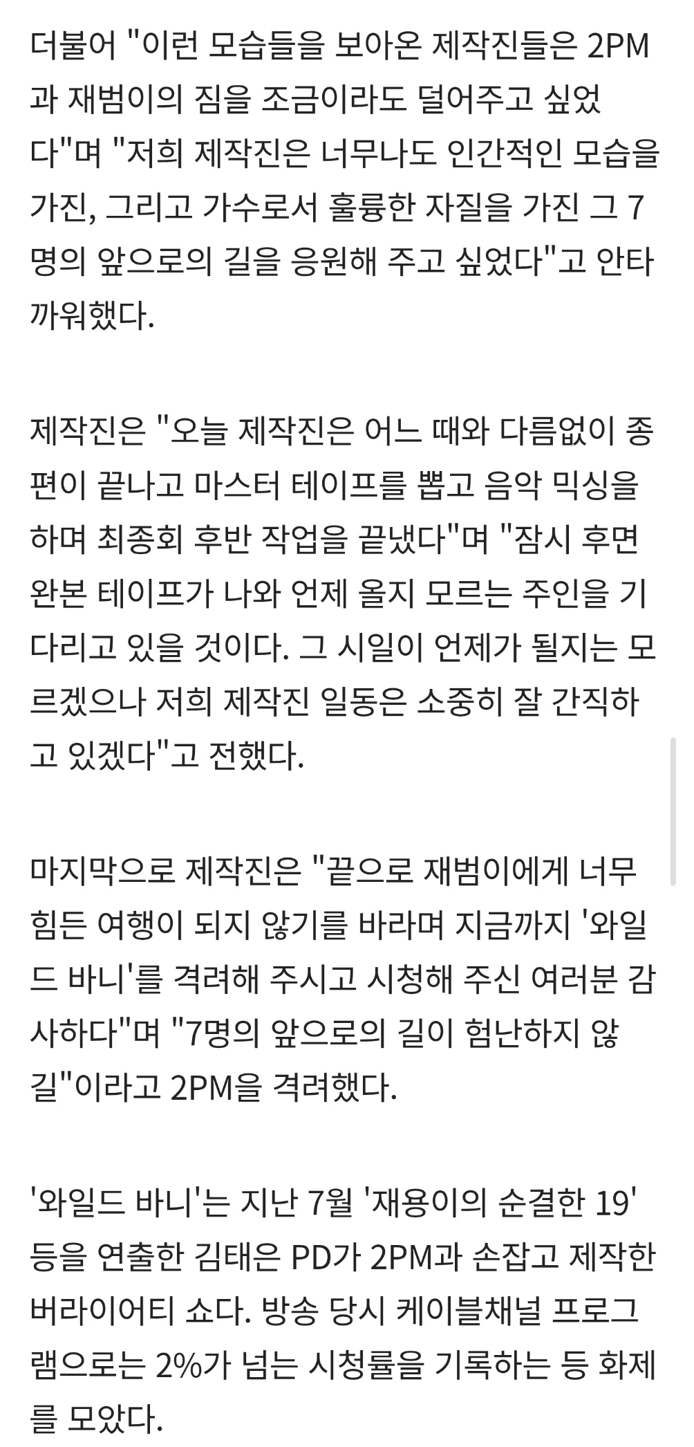 마지막화가 공개되지 않은 이유는 박재범과 2PM에 대한 의리를 지키겠다는 이유였음
