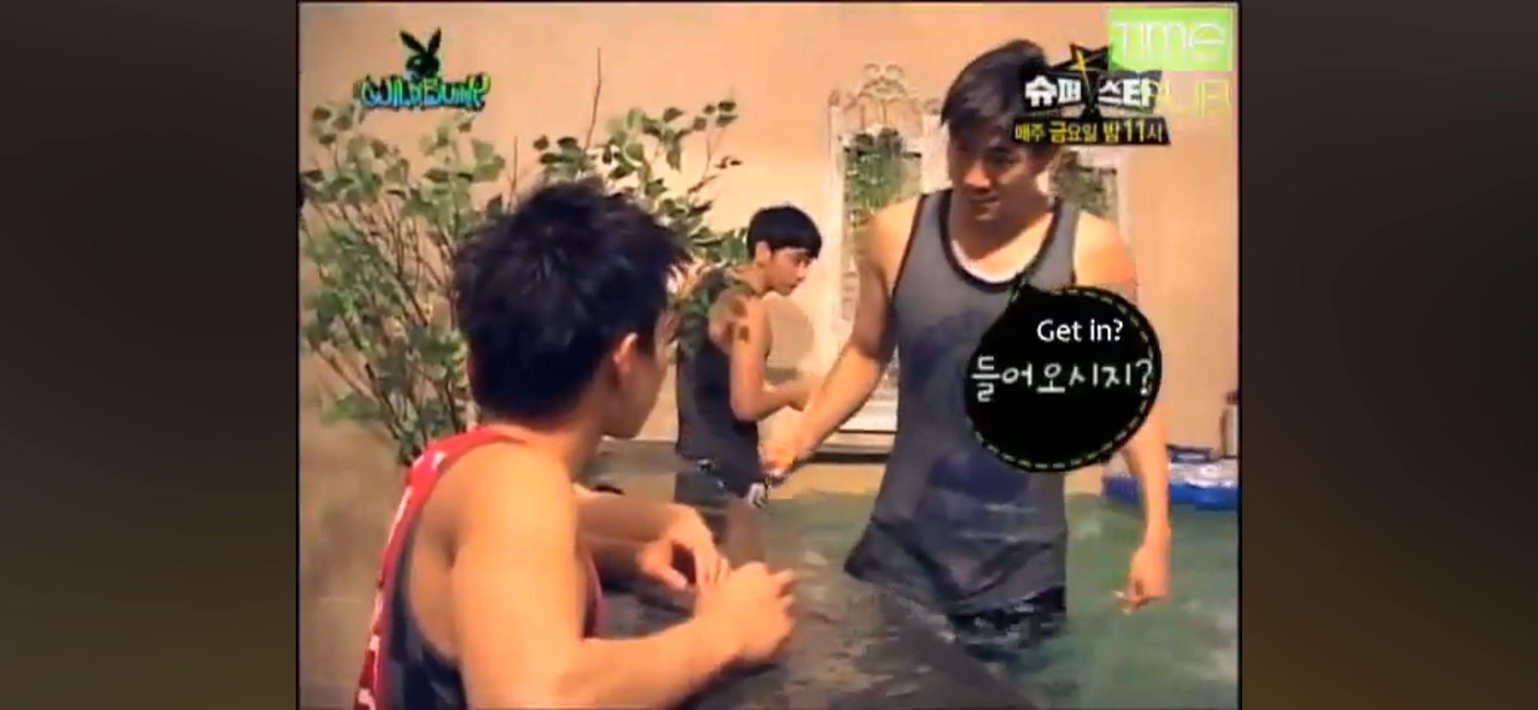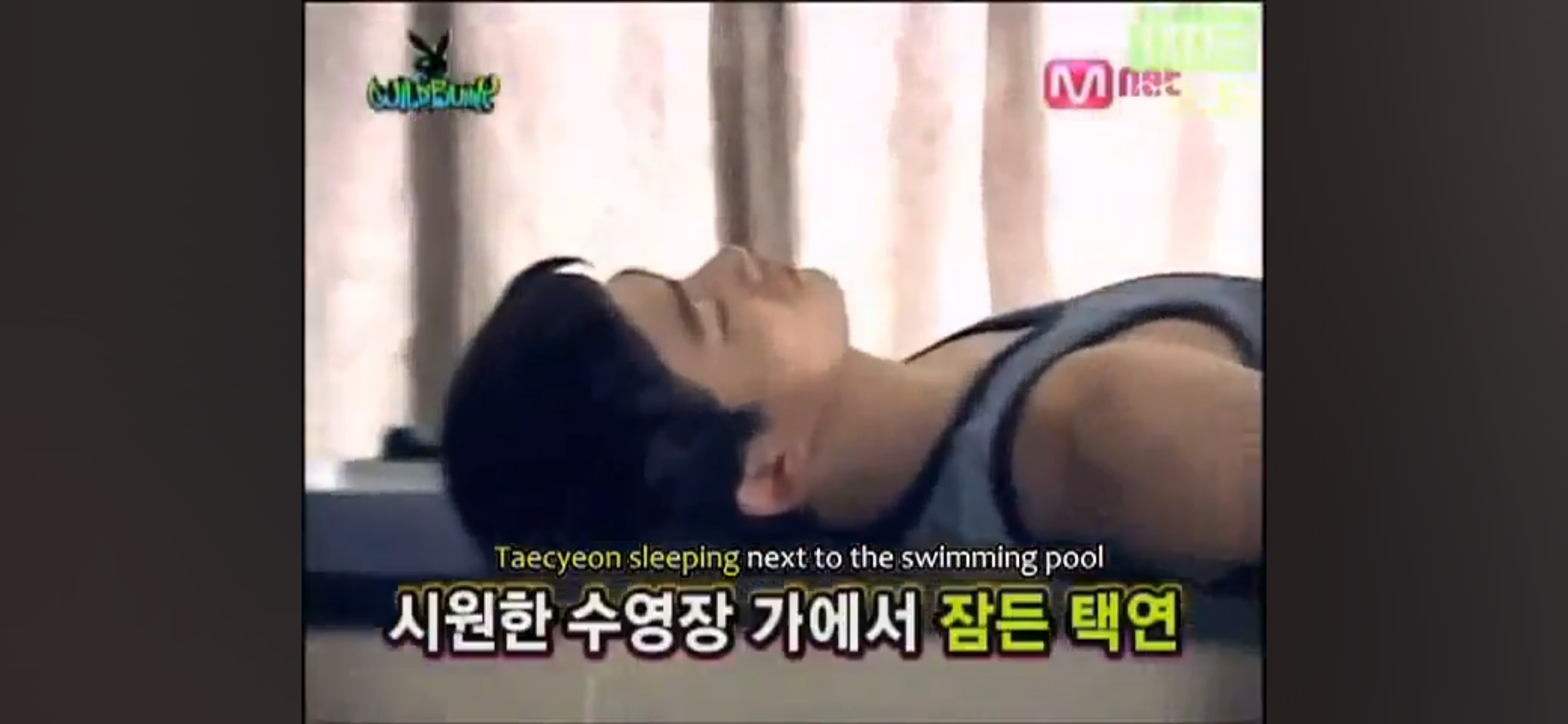수영장 난간에서 잠든 택연