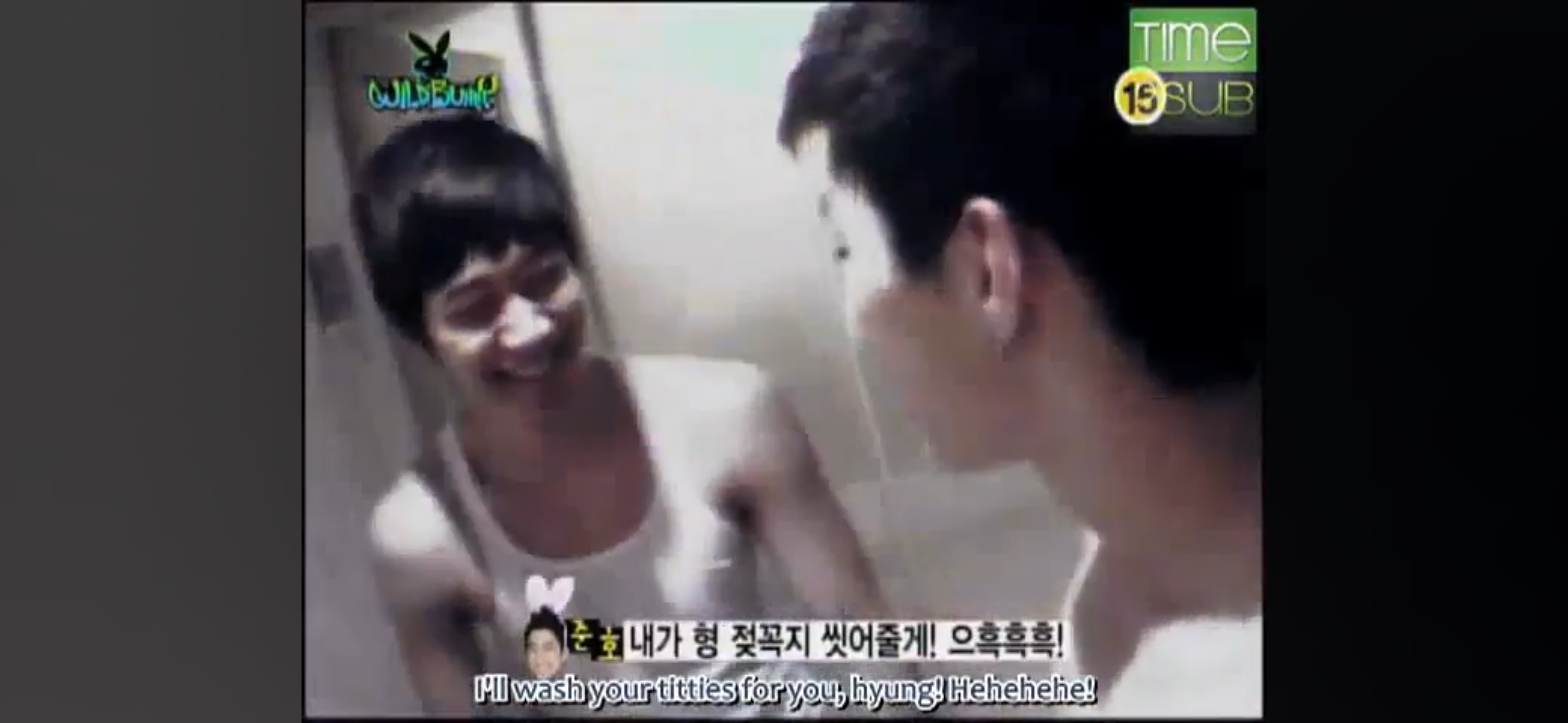 멤버 두 명씩 들어가서 샤워함