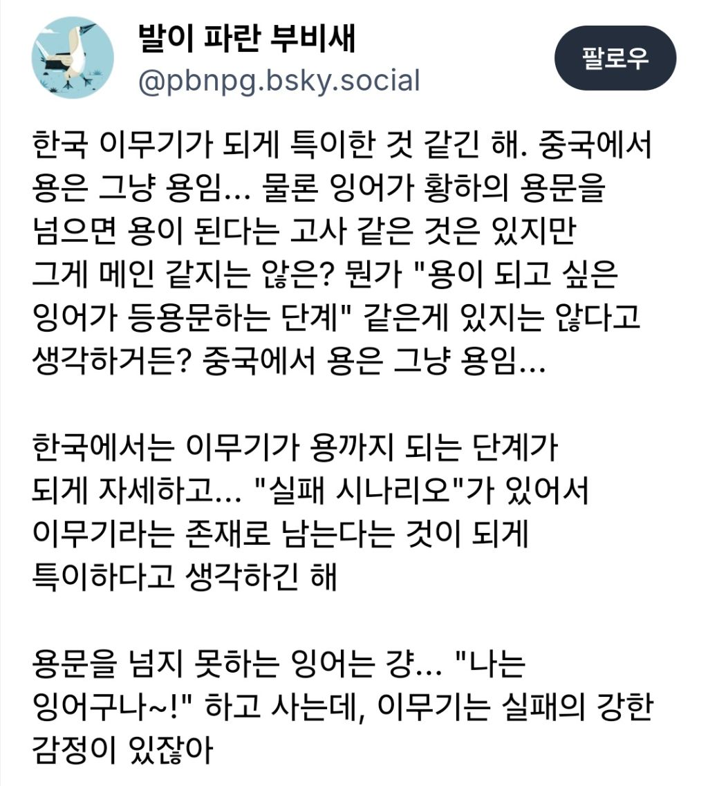 작성자효효효횽 작성시간 26.02.27 그럼 중국은 용 자식들이 태어날때부터 용인 그런 느낌이야? 아님 잉어가 어쩌다보니 엥 나 등용문 넘었네? 용으로 진화~ 이런 거야?