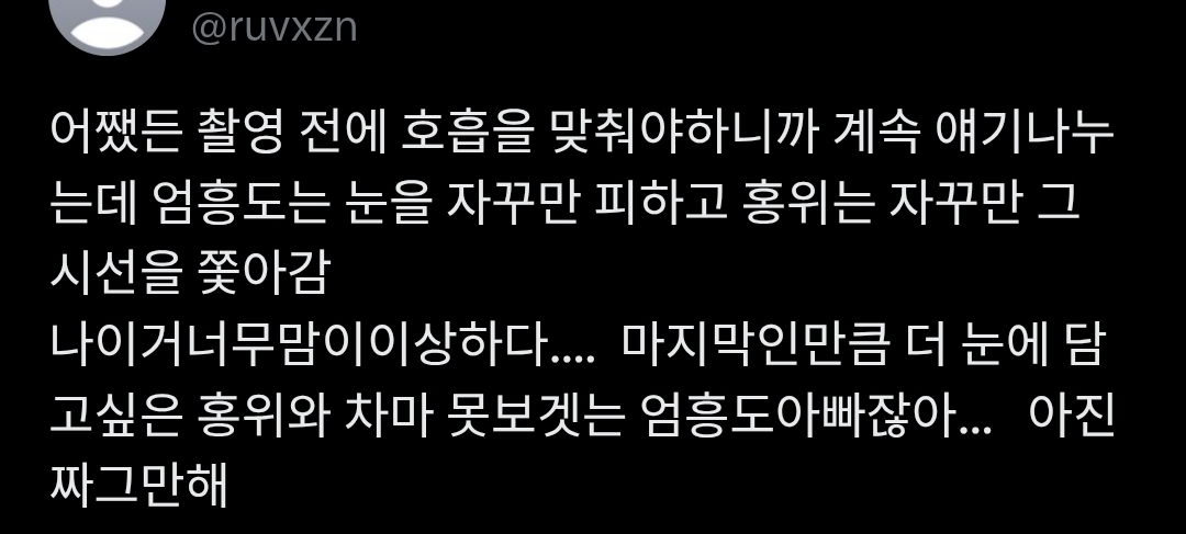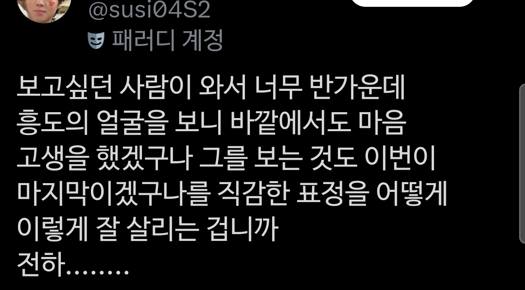 [스크랩] [흥미돋]촬영 들어가기전까지 박지훈 눈 피했다는 유해진 작성자suitup|작성시간26.02.27|조회수98,969 목록 댓글 196 글자크기 작게가 글자크기 크게가 소울드레서는 우리가 만들어가는 소중한 공간입니다.댓글 작성 시 타인에 대한 배려와 책임을 다해주세요.@SH@SH@HM@SHㅊㅊ X (첨부 계정) 다음검색 스크랩 원문 : 비공개카페 현재 게시글 추가 기능 열기 북마크 공유하기 신고 센터로 신고 댓글 댓글 196 댓글쓰기 답글쓰기 댓글 리스트 작성자데이비드코런스웻 | 작성시간 26.02.28 ㅠ시발 수양대군 죽어 작성자수수수수퍼어 | 작성시간 26.02.28 눈이 사기야ㅜ 작성자딥치즈버거 | 작성시간 26.03.01 눈이 진짜….. ㅜ 작성자압둘라여시 | 작성시간 26.03.01 어케했냐.. 작성자구도장원공 | 작성시간 26.03.02 하.. 댓글 전체보기