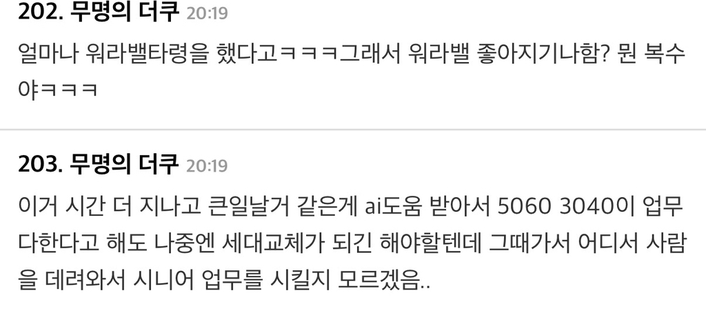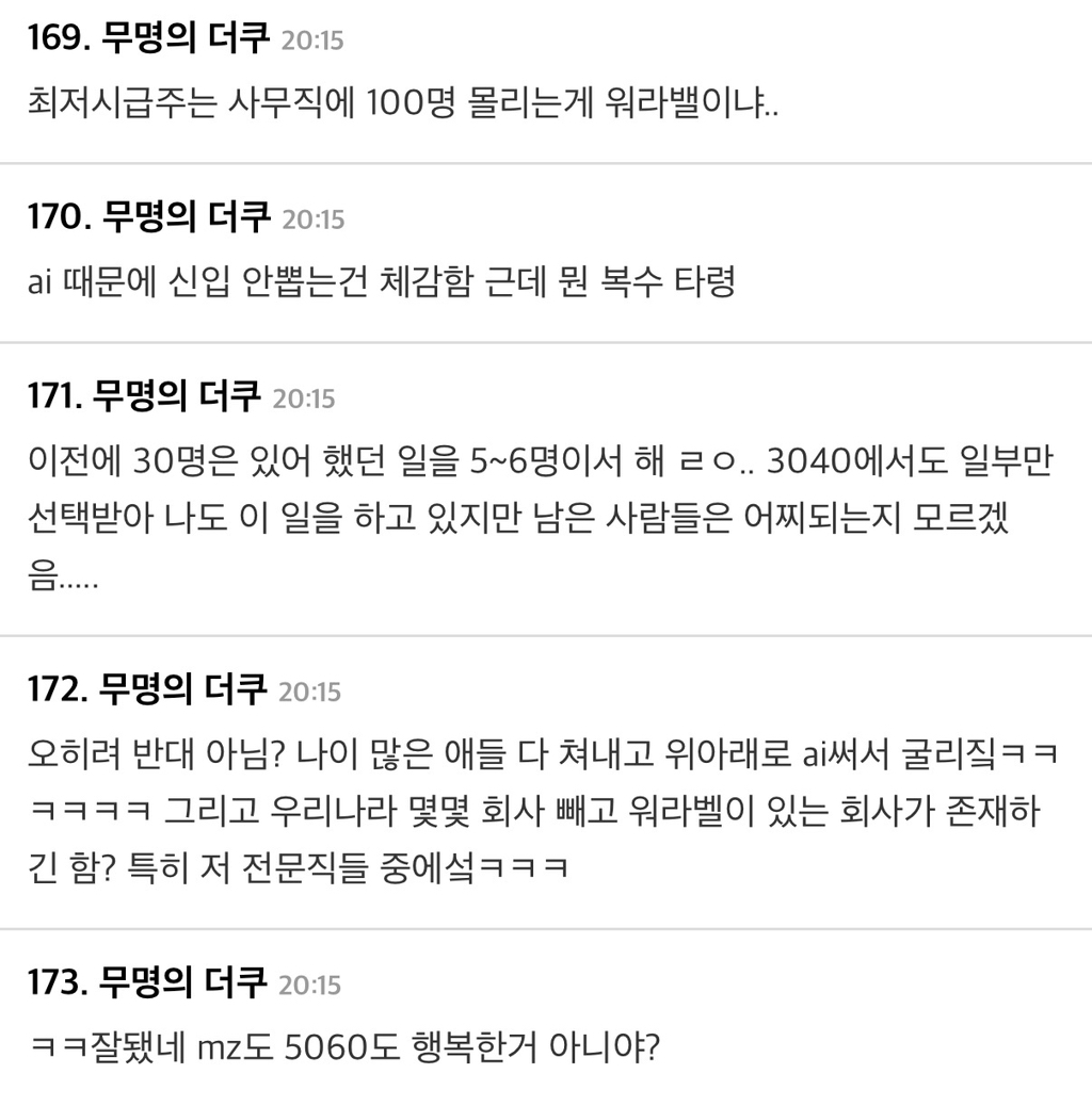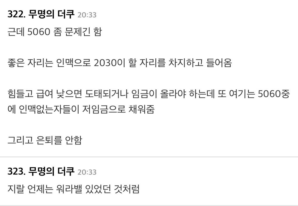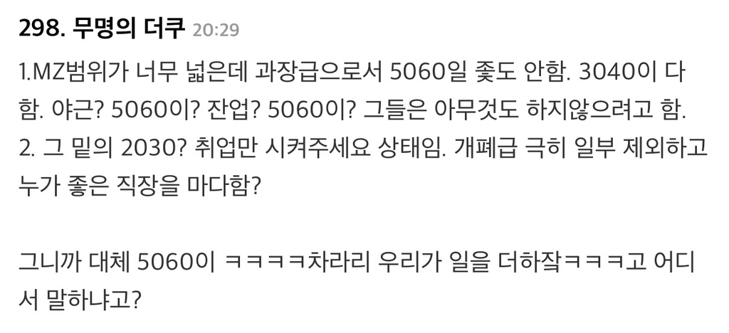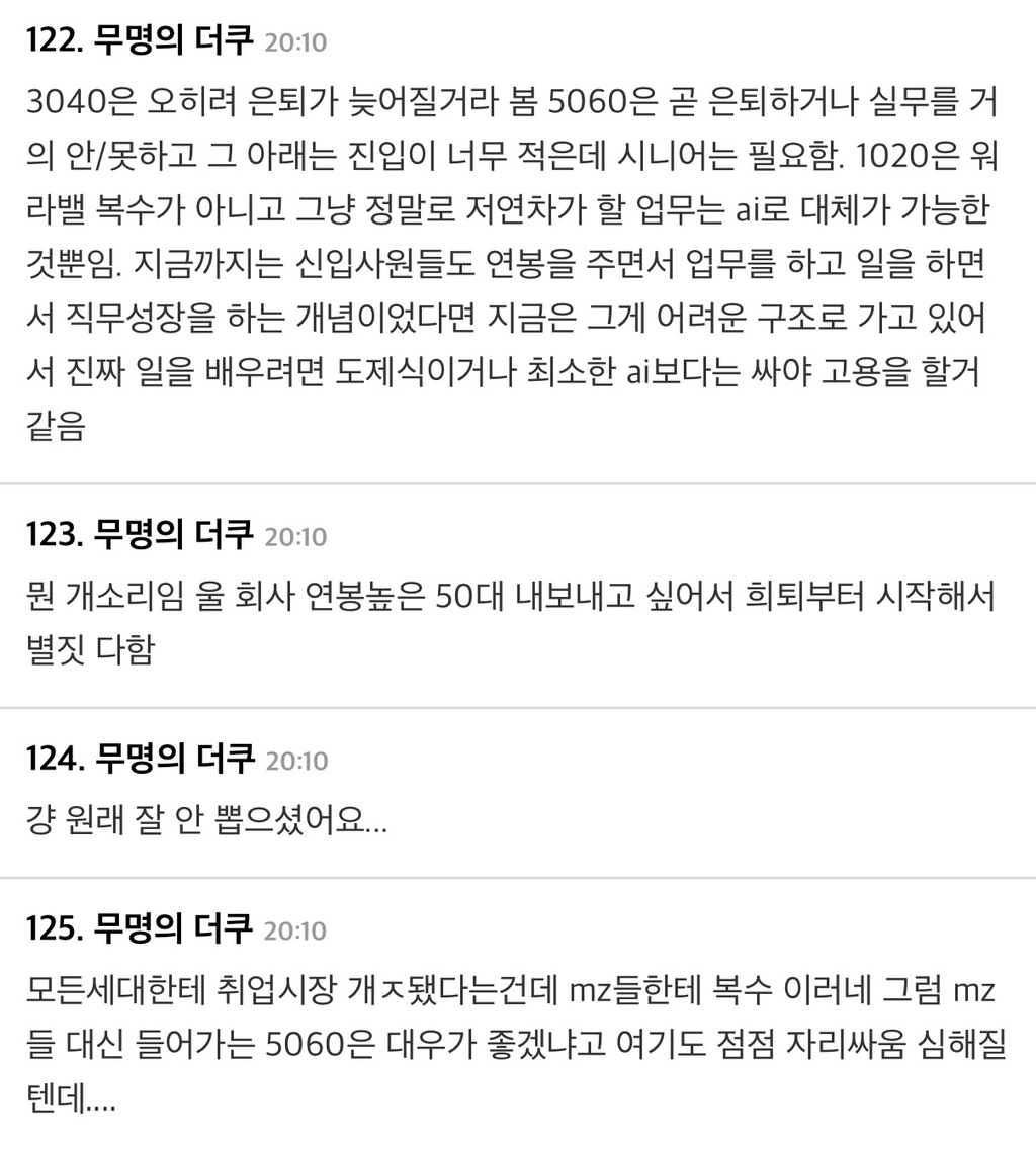 5060들끼리 일 더 많이 하자는 분위기...ㅇㅇ