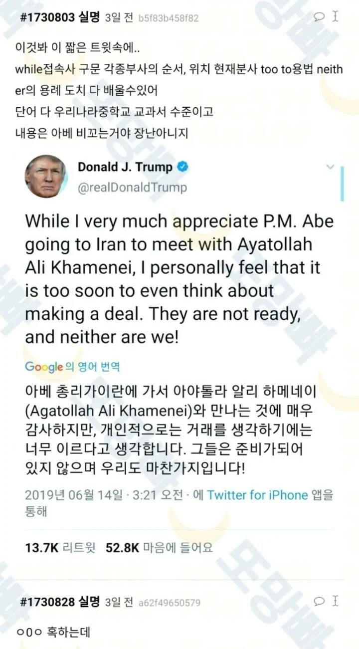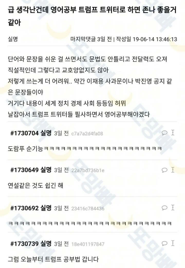 [흥미돋]트럼프 트위터로 영어공부하면 좋은이유.jpg 작성자모낙카|작성시간26.02.27|조회수10,480 목록 댓글 25 글자크기 작게가 글자크기 크게가 출처: 여성시대 모낙카 다음검색 현재 게시글 추가 기능 열기 북마크 공유하기 신고 센터로 신고 댓글 댓글 25 댓글쓰기 답글쓰기 댓글 리스트 작성자SilentIllusion | 작성시간 26.02.27 오 개쩐다 작성자제니좋아하는애엄마 | 작성시간 26.02.27 팔로 고 작성자지구하마 | 작성시간 26.02.28 오 작성자치즈파레 | 작성시간 26.02.28 오.. 작성자98년도에는요 | 작성시간 26.02.28 신기하가 댓글 전체보기