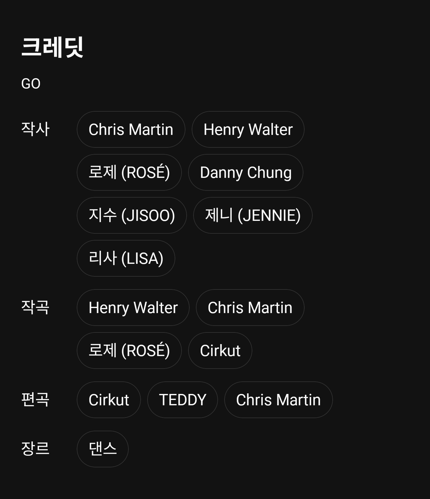 [흥미돋]블랙핑크 타이틀곡 "GO" 크레딧 작성자샌미|작성시간26.02.27|조회수32,651 목록 댓글 27 글자크기 작게가 글자크기 크게가 출처: https://theqoo.net/square/4108833091 다음검색 현재 게시글 추가 기능 열기 북마크 공유하기 신고 센터로 신고 댓글 댓글 27 댓글쓰기 답글쓰기 댓글 리스트 작성자유돈노하우럭키유아 | 작성시간 26.02.27 크리스마틴 로제 테디? 미쳣네 작성자지재유경 | 작성시간 26.02.27 ㄷㄷ 크리스마틴 작성자대디오 | 작성시간 26.02.27 에 콜드플레이? 작성자샤브올데이 | 작성시간 26.02.27 크리스마틴..? 한국 공연때 친해졌나 대박이네 작성자Hell Angel | 작성시간 26.02.28 ㅁㅊ 크리스 마틴?????? ㄷㄷㄷ 댓글 전체보기