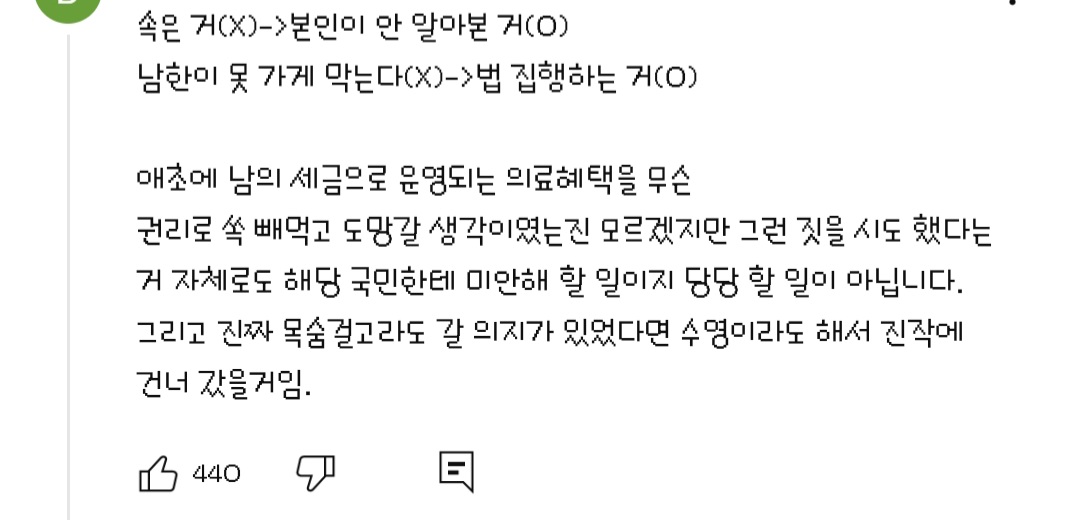 작성자출근극혐 작성시간 26.03.01 개똥같은 소리를 하고있어 휴전국가간애 두달 돈벌도 돌아가기 이러고있내 탈북미닝라는 이유로 나보다 잘사는디;;;;
