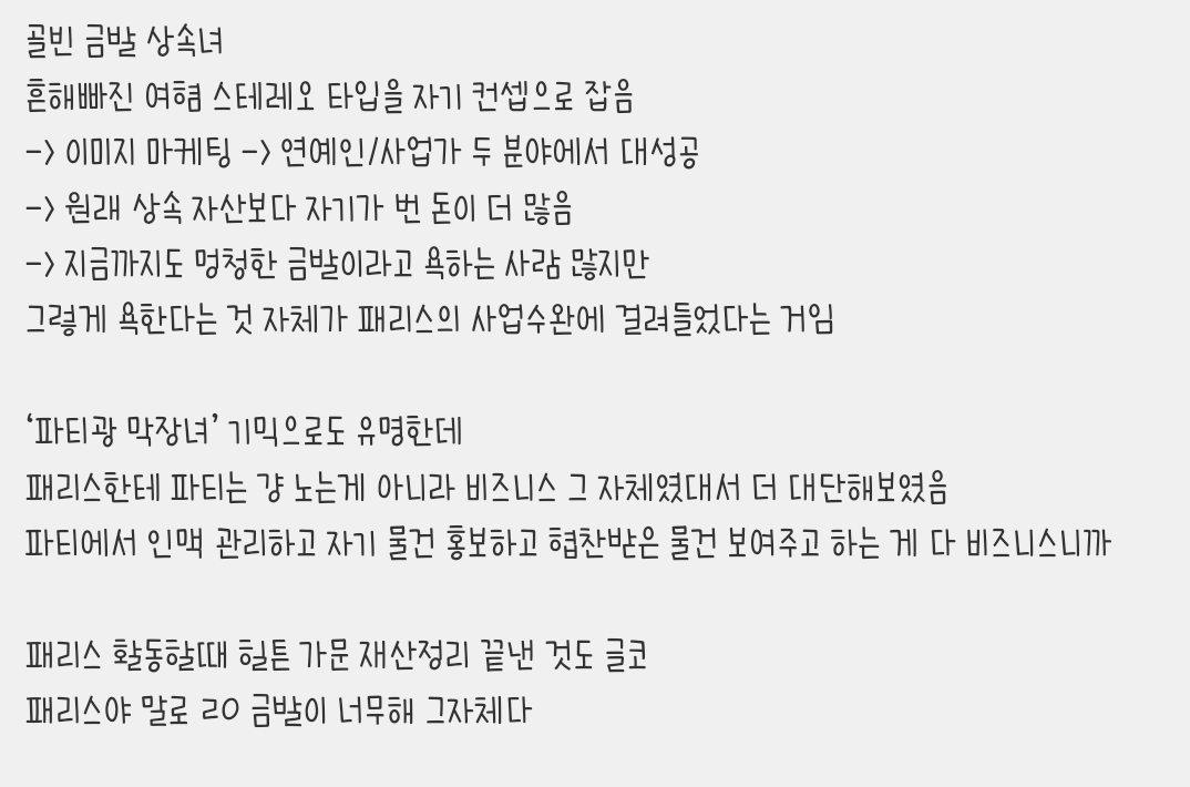힐튼가 상속녀 프레임으로 마케팅해서 뜨긴했는데
